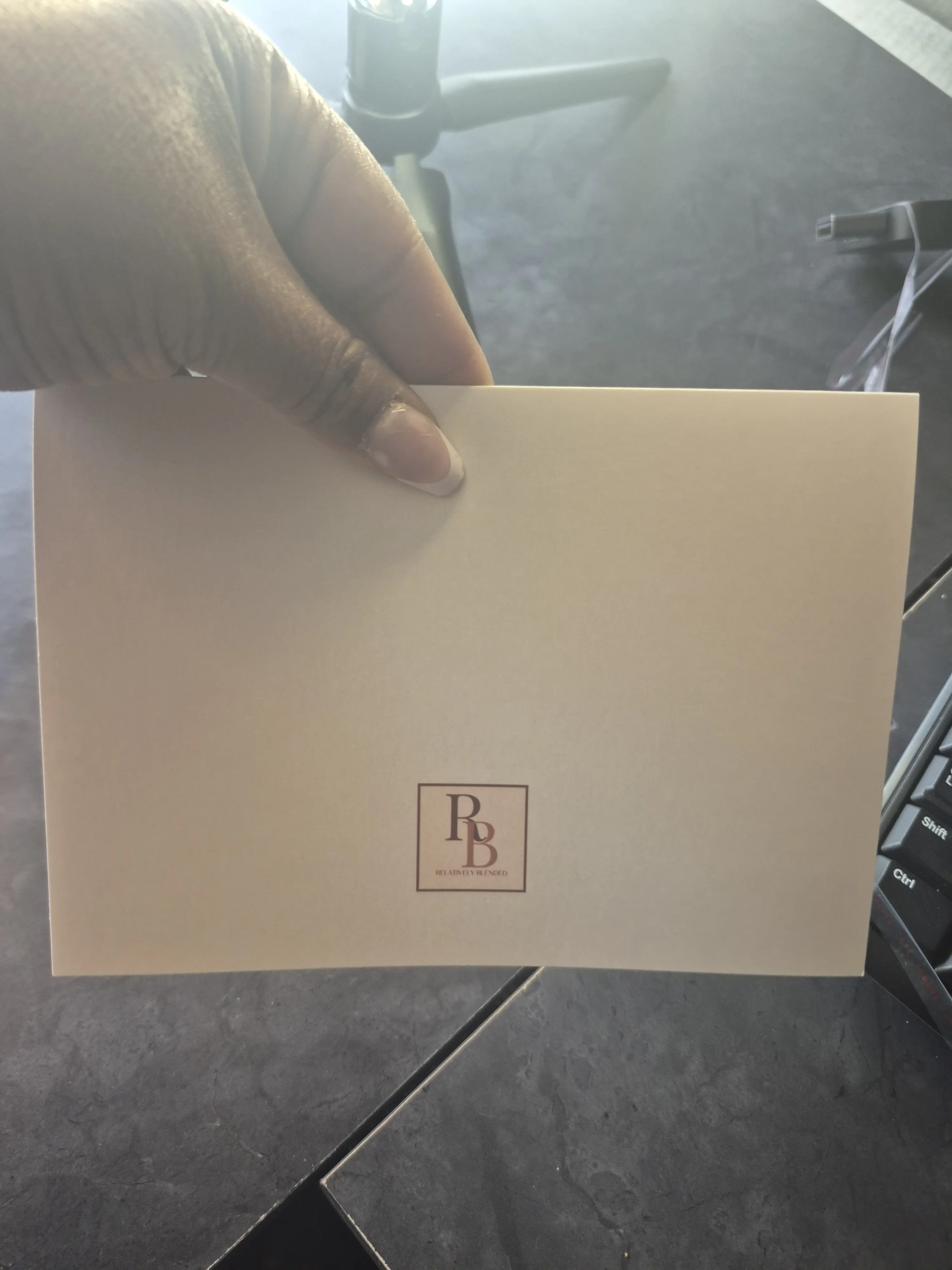 Design: Printed text on the front and inside, with Relatively Blended logo on the back.