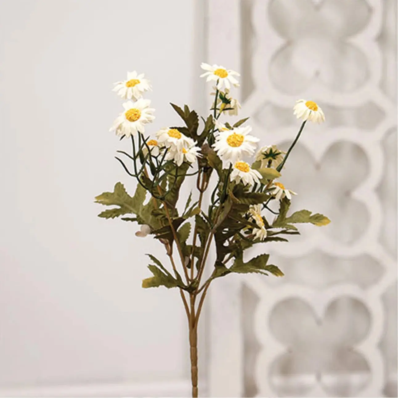 Bring the charm of wild country meadows into your home with this Mini Country Daisy Spray. Featuring soft cream-white blooms with textured yellow centers and rustic green leaves, this delicate stem adds a natural, farmhouse feel to any display.