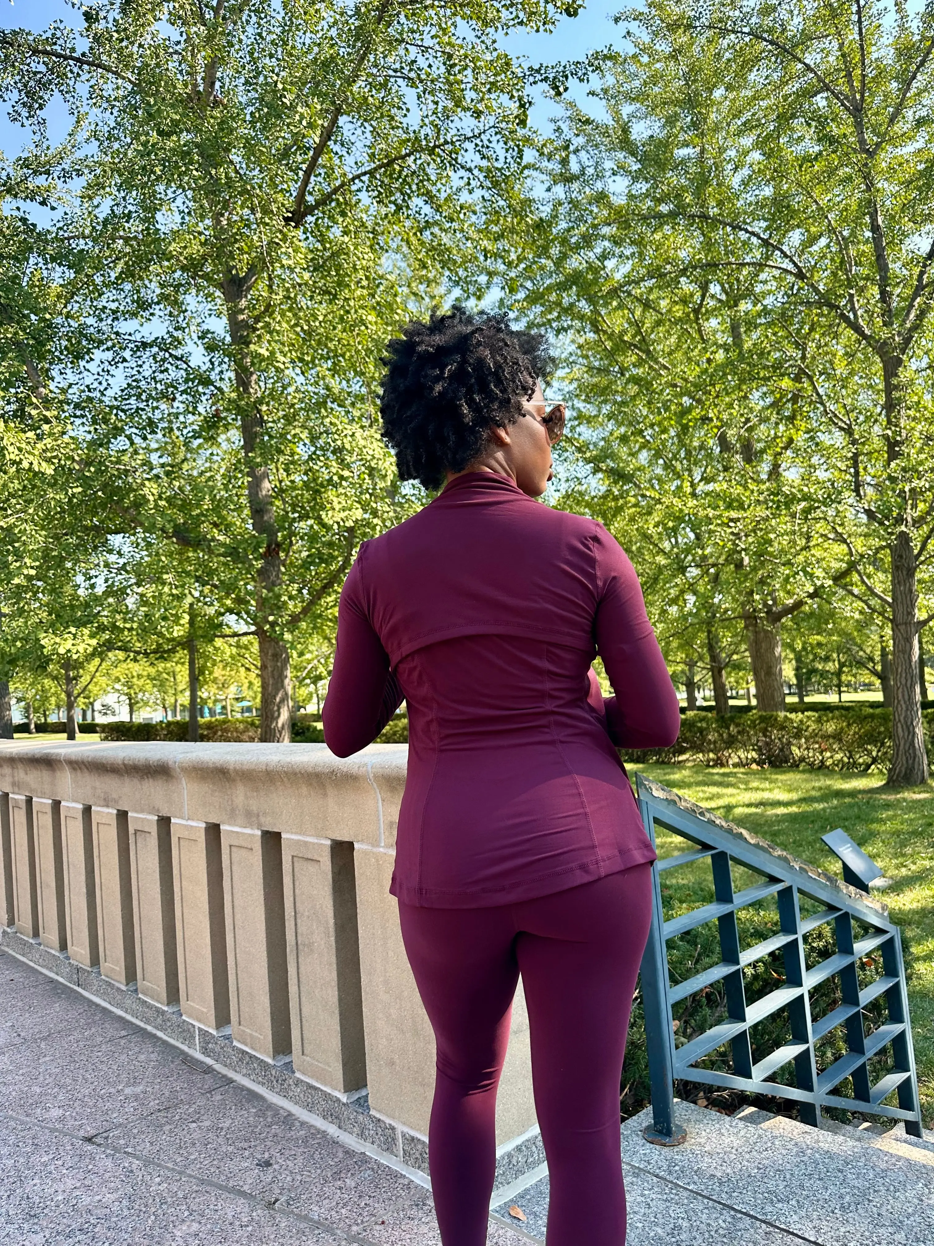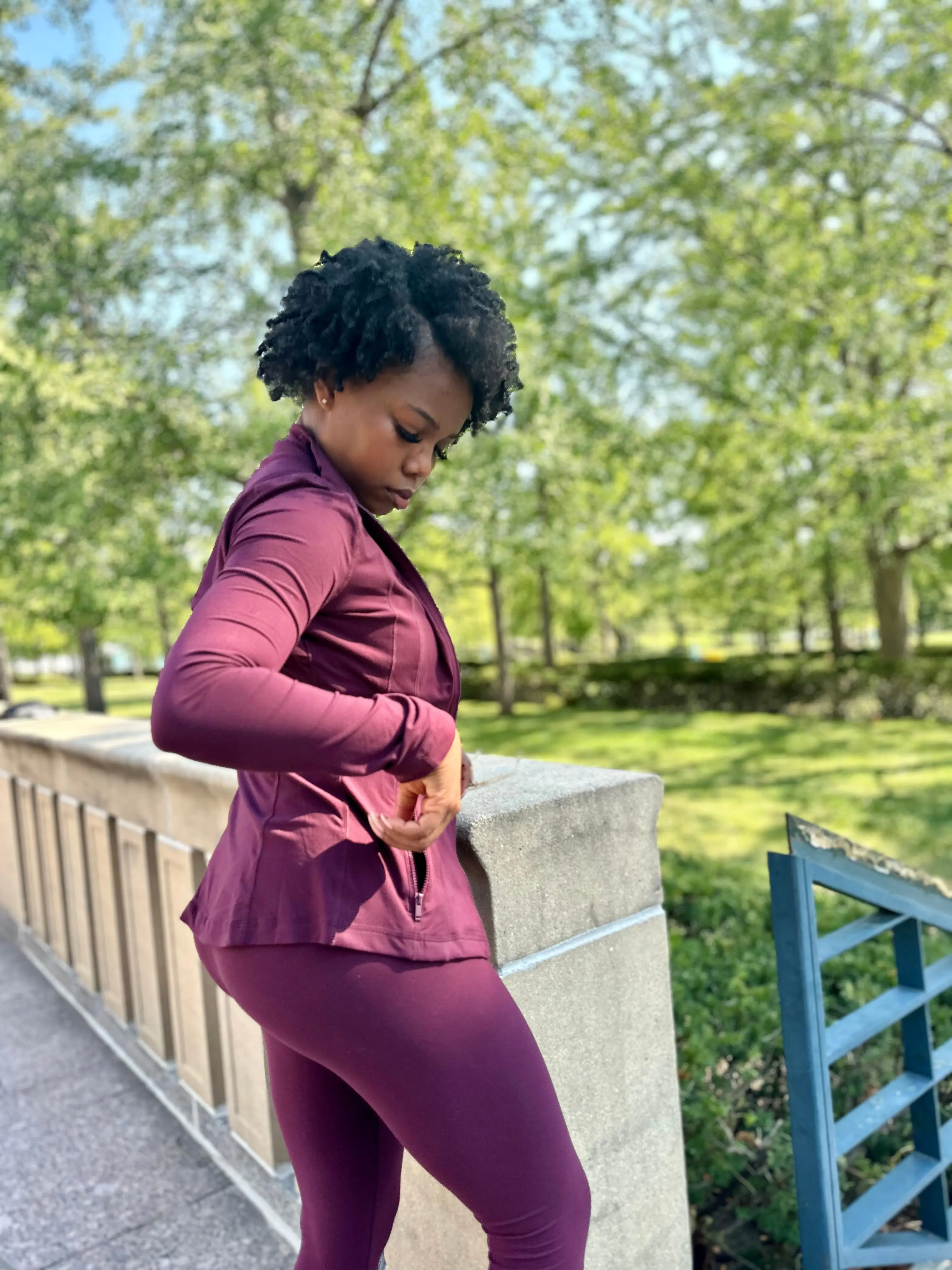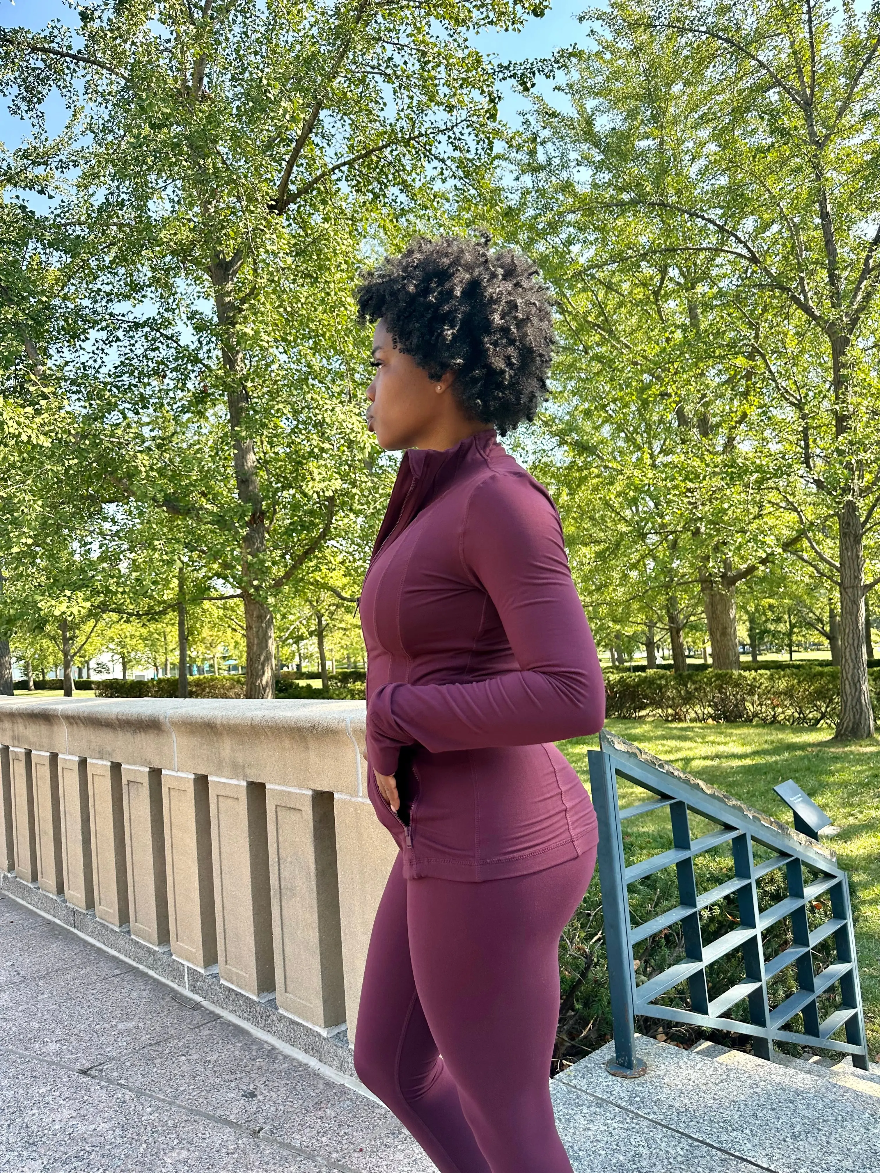 This jacket is perfect to wear over your favorite workout set. This jacket pairs perfectly with our DEMI Yoga Jumpsuit.