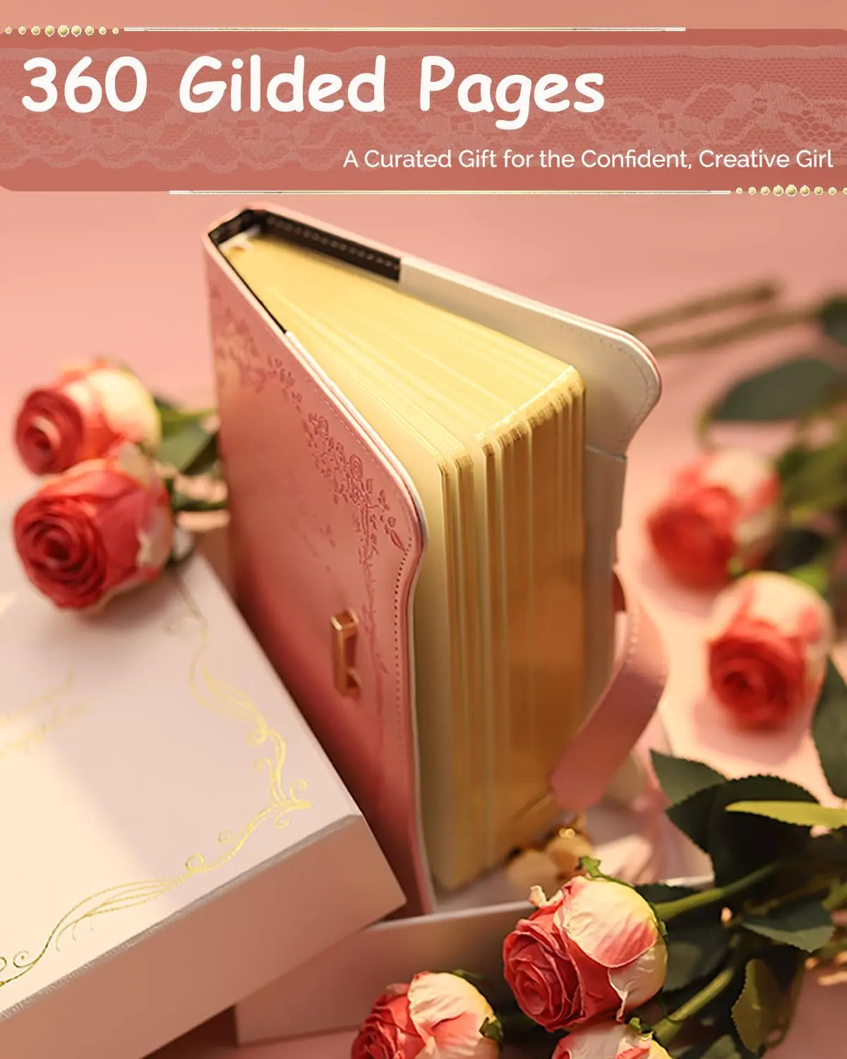 ·360 Gold-Leafed Pages: With 360 pages of luxurious, acid-free paper, this B6-size (7x5 inches) journal is perfect for a year's worth of secrets and stories. The edges are touched with gold foil, mirroring the golden lock and adding an extra touch of magic.