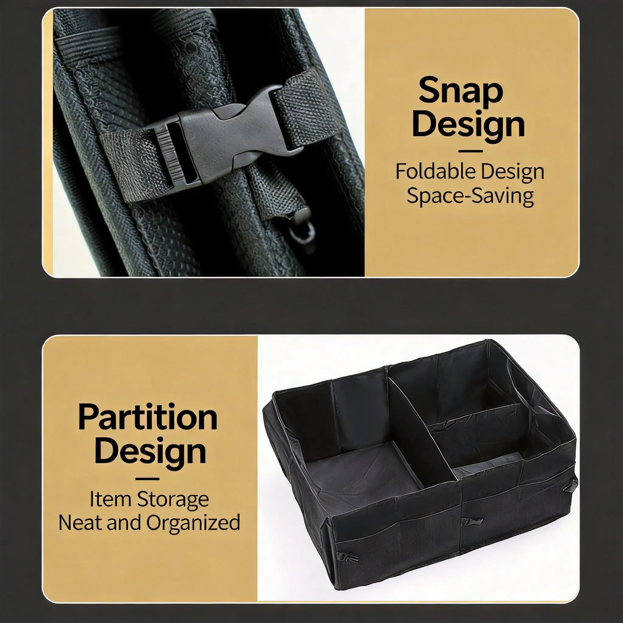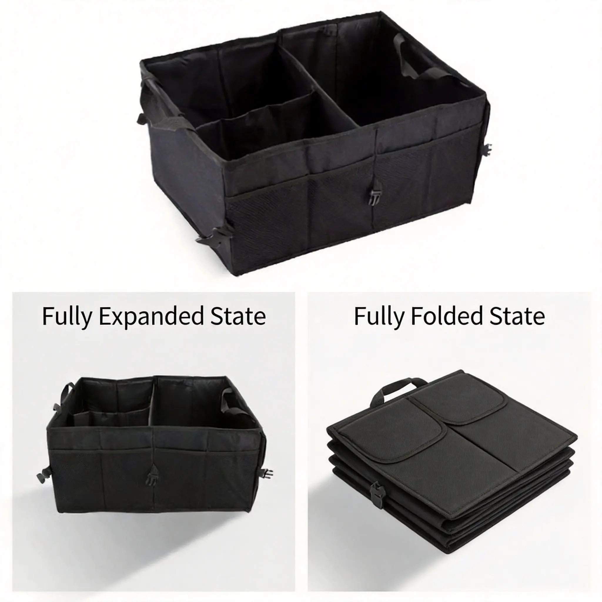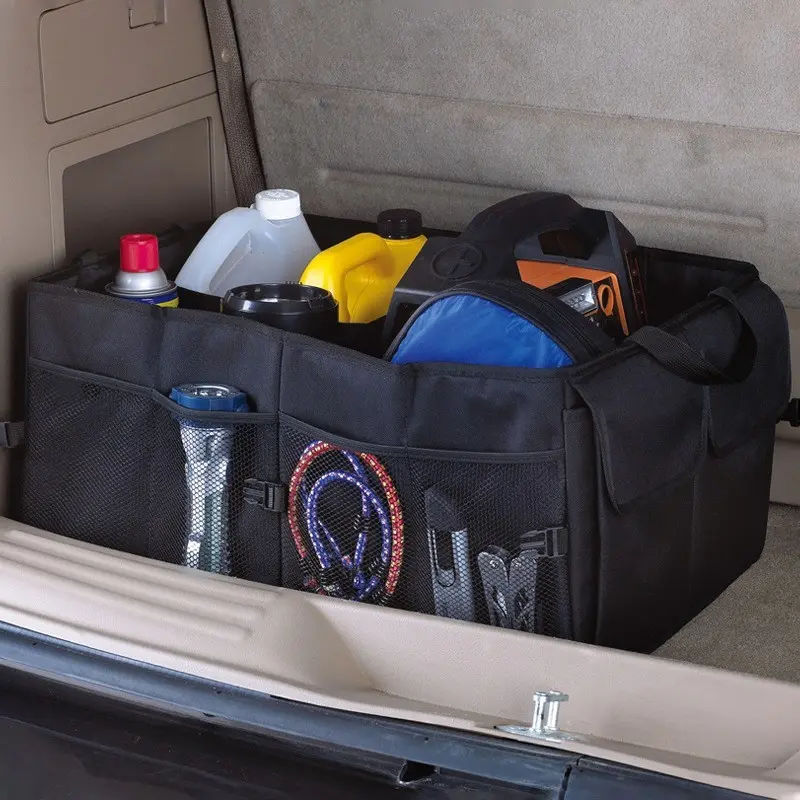 1pc Car Trunk Storage Box, Foldable Car Organizer with Adjustable Straps, Waterproof Storage Bin for Trunk and Suv Seats, Automotive Accessories