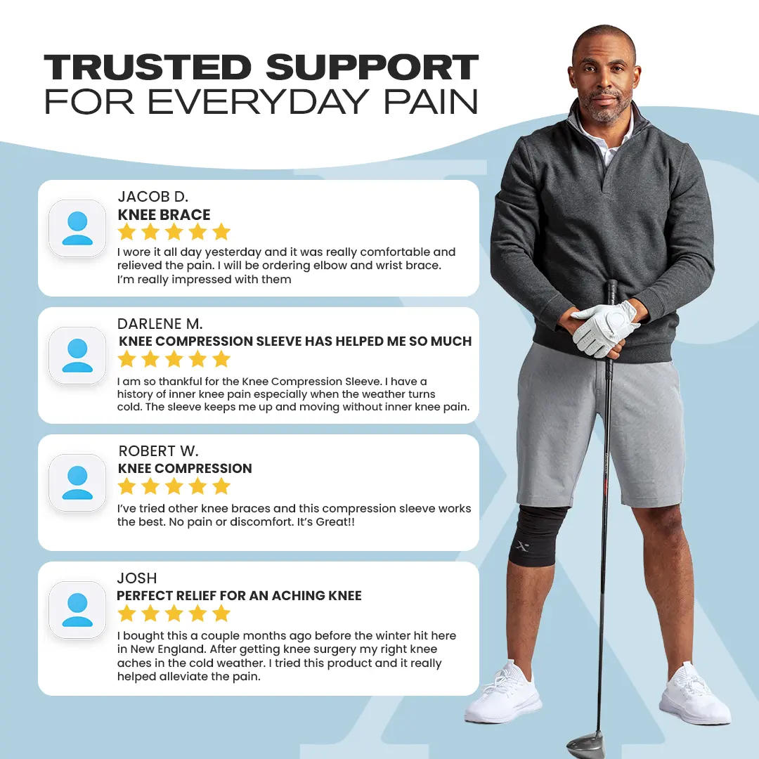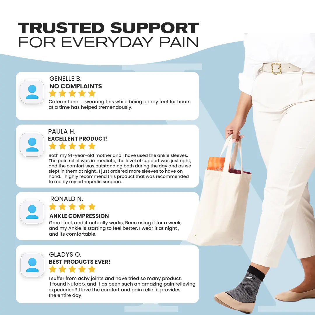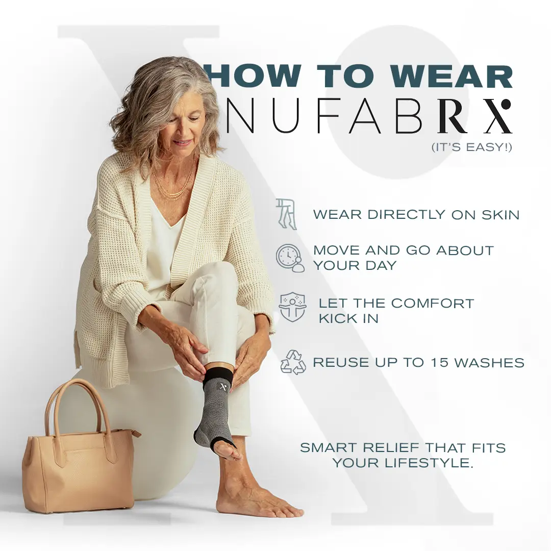 Nufabrx compression sleeves reduce pain and swelling while providing gentle support. The fabric is infused with capsaicin, a natural pain-relieving ingredient that works while you wear it.