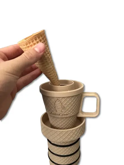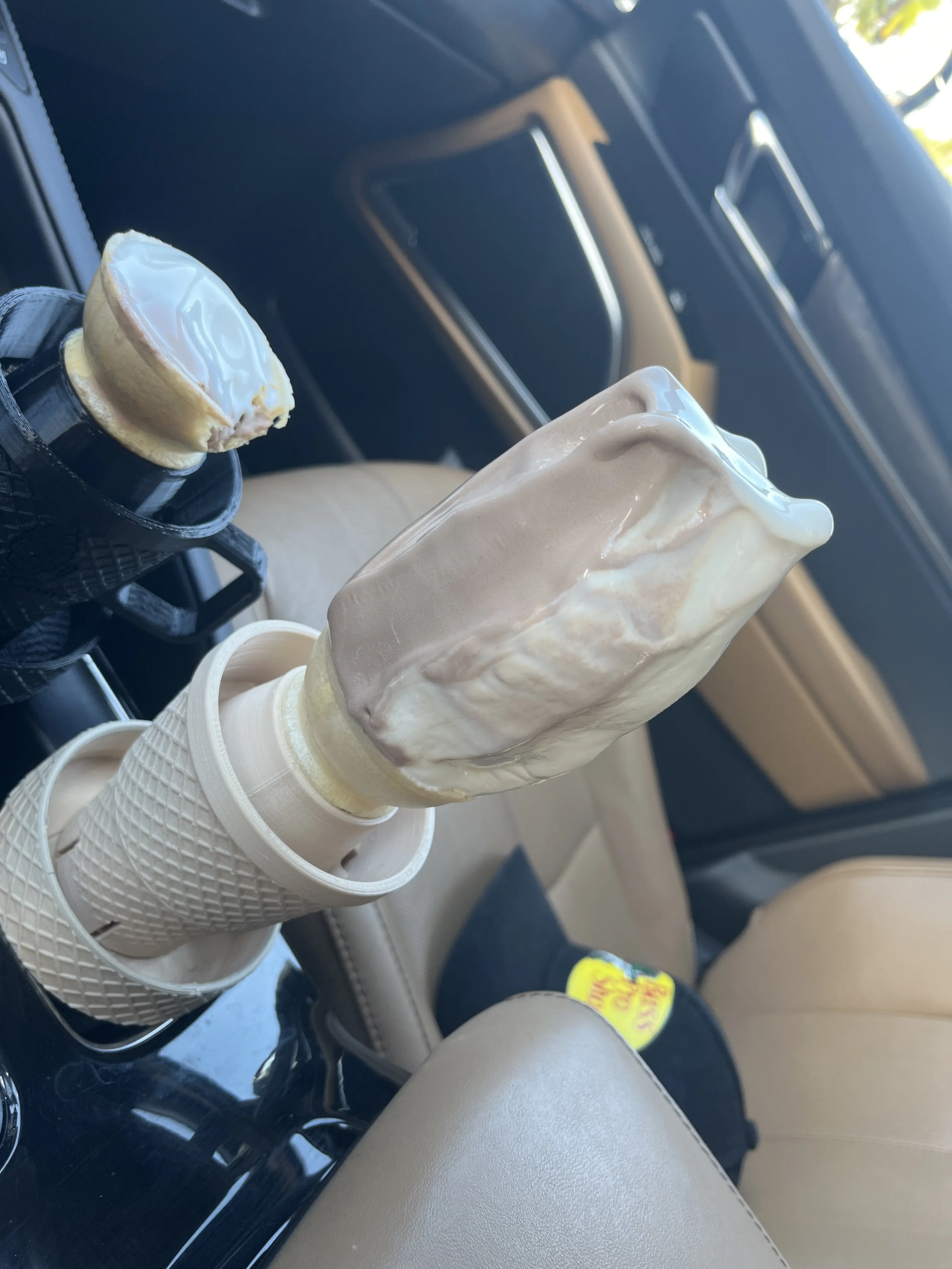 AutoCone is he first cup holder insert designed specifically to hold a variety of ice cream cones. Whether you are driving, parked, or eating outside or at a table with food, your cone stays upright, secure and drip free.