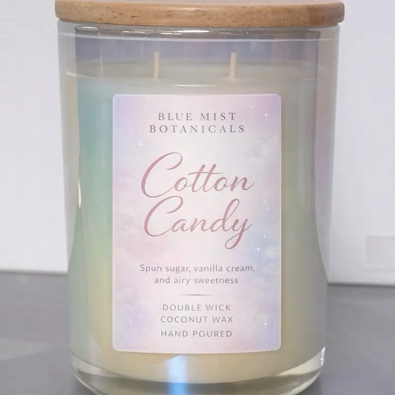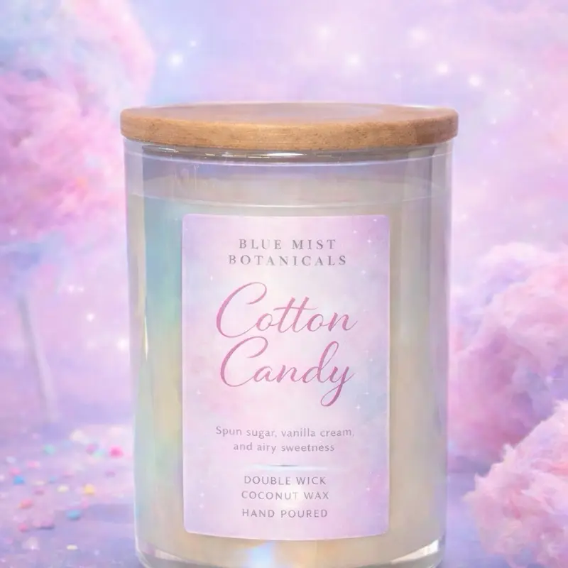 Blue Mist Botanicals Cotton Candy Double Wick Coconut Wax Hand Poured Candle with Spun Sugar Vanilla Cream and Airy Sweetness