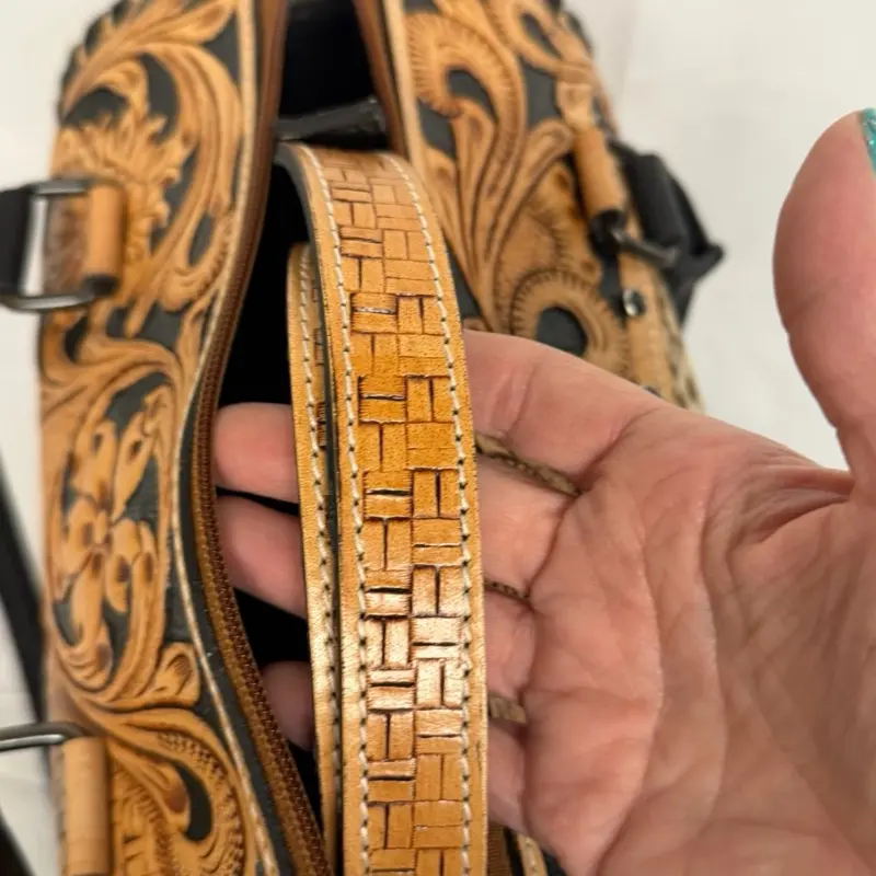 • Detailed floral tooled leather design