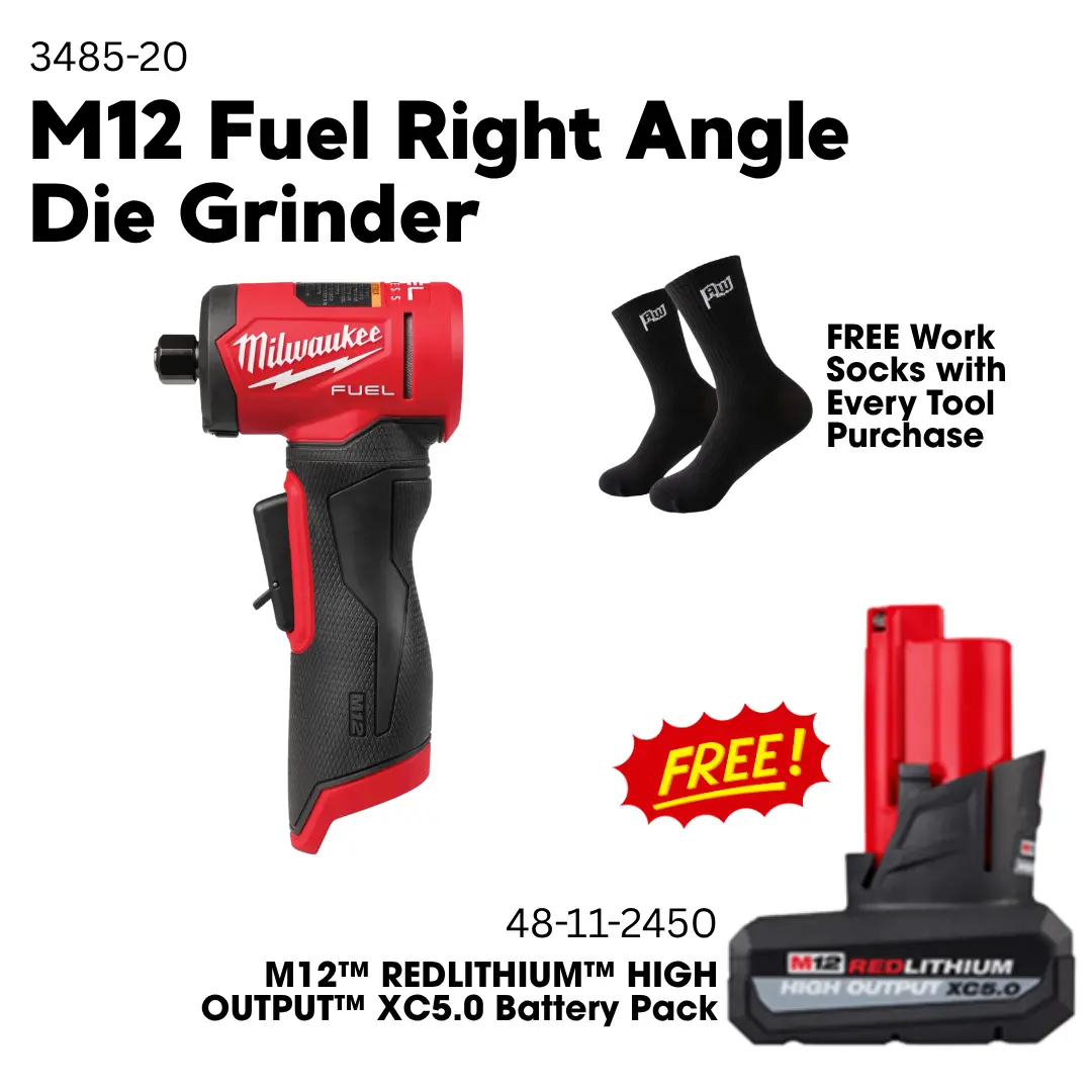 M12 FUEL™ 1/4" Right Angle Die Grinder the latest cordless right angle die grinder that delivers the performance and size professional service mechanic's demand. The die grinder delivers 50% more power than pneumatic competition and features our POWERSTATE™ Brushless Motor Technology with improved torque. The cordless die grinder provides greater mobility and accessibility to help fit in tight places without giving up on performance. The M12™ Right Angle Die Grinder features an improved ergonomic handle with 4-Mode speed control and a responsive variable-speed trigger, giving you unmatched control. New shadowless lighting and a single-wrench spindle lock allow for improved ease of use. The new M12 FUEL™ 1/4" Right Angle Die Grinder takes productivity and accessibility to the next level.