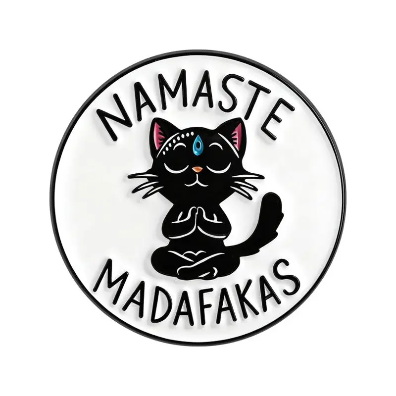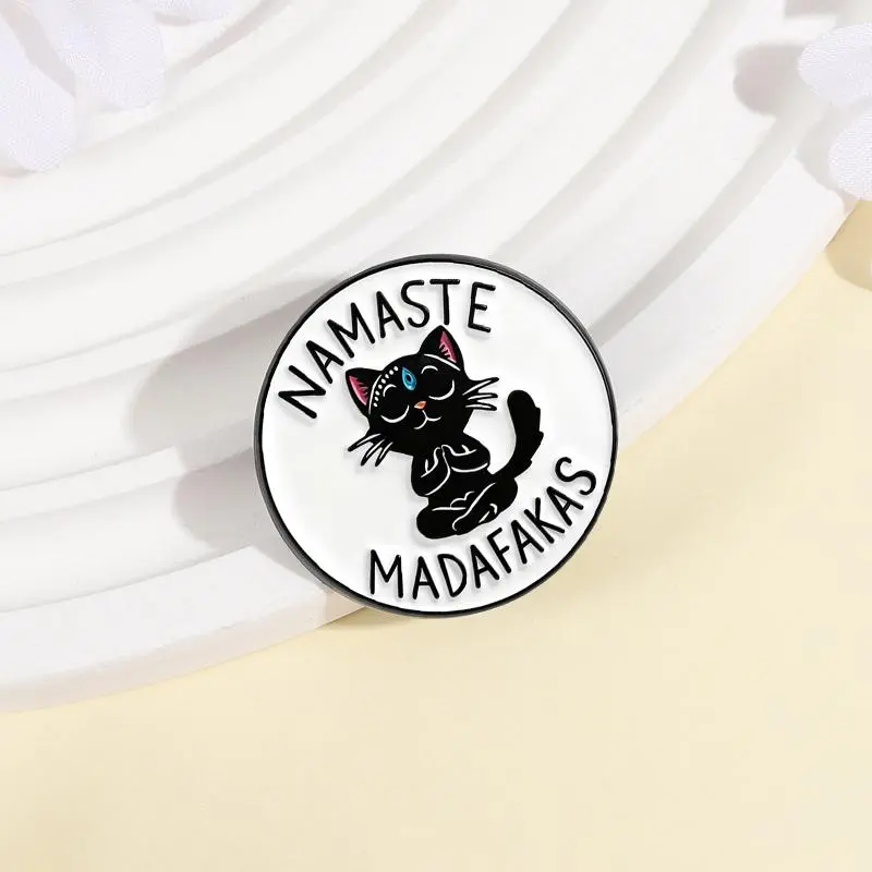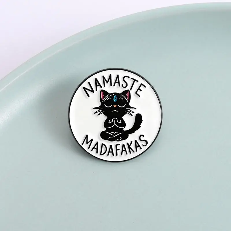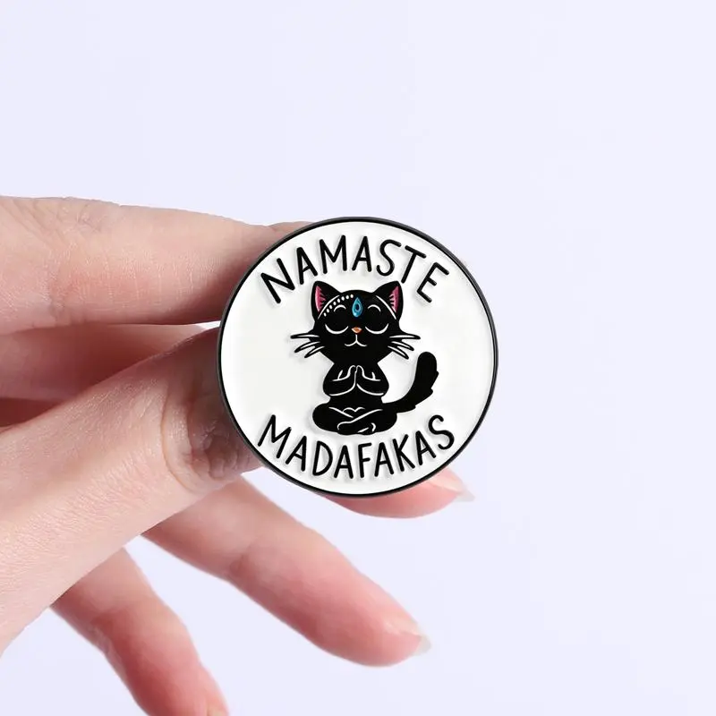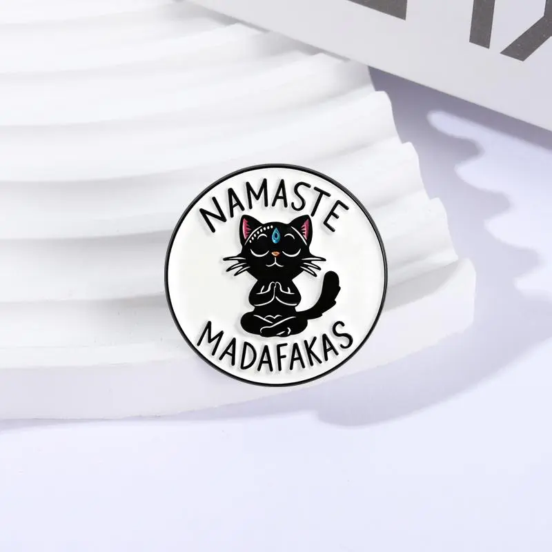 Yoga Cat Namaste Madafakas Brooch Enamel Pins Funny Cartoon Meditation Cat Brooches Jacket Lapel Badge Jewelry Gifts for Friends