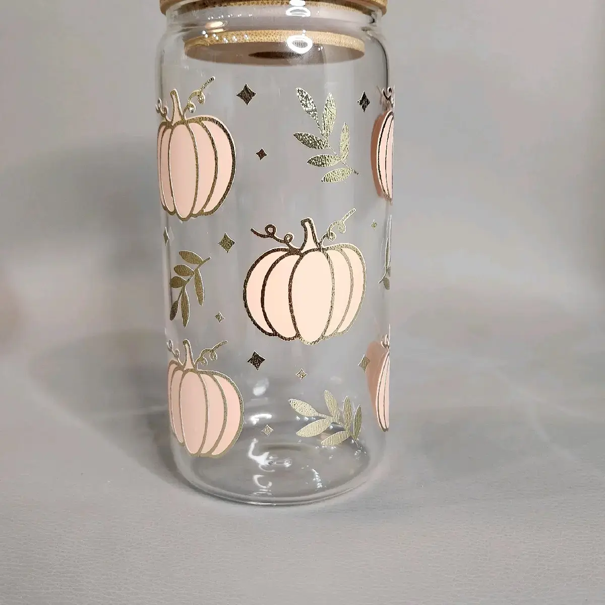 Color Changing Pumpkin Glass Cup, with Bamboo Lid and Straw, Fall Glass Cup. Pumkin Glass Cup, Thanksgiving Gift. Drinkware Tumblers