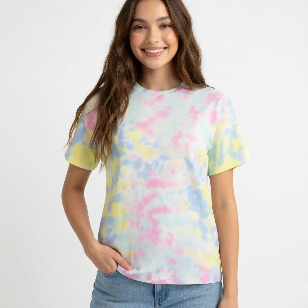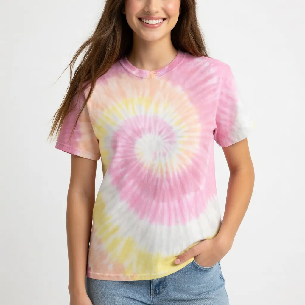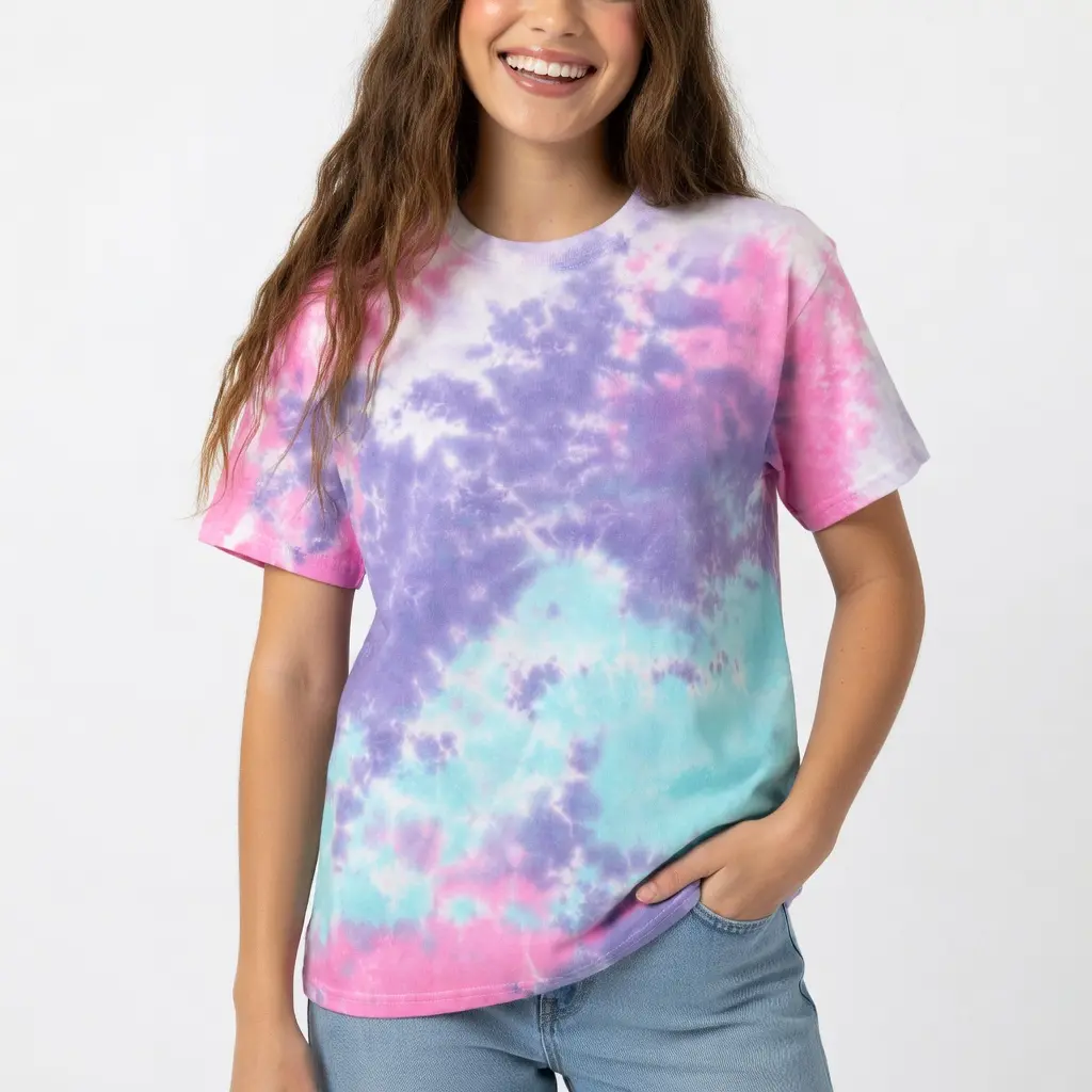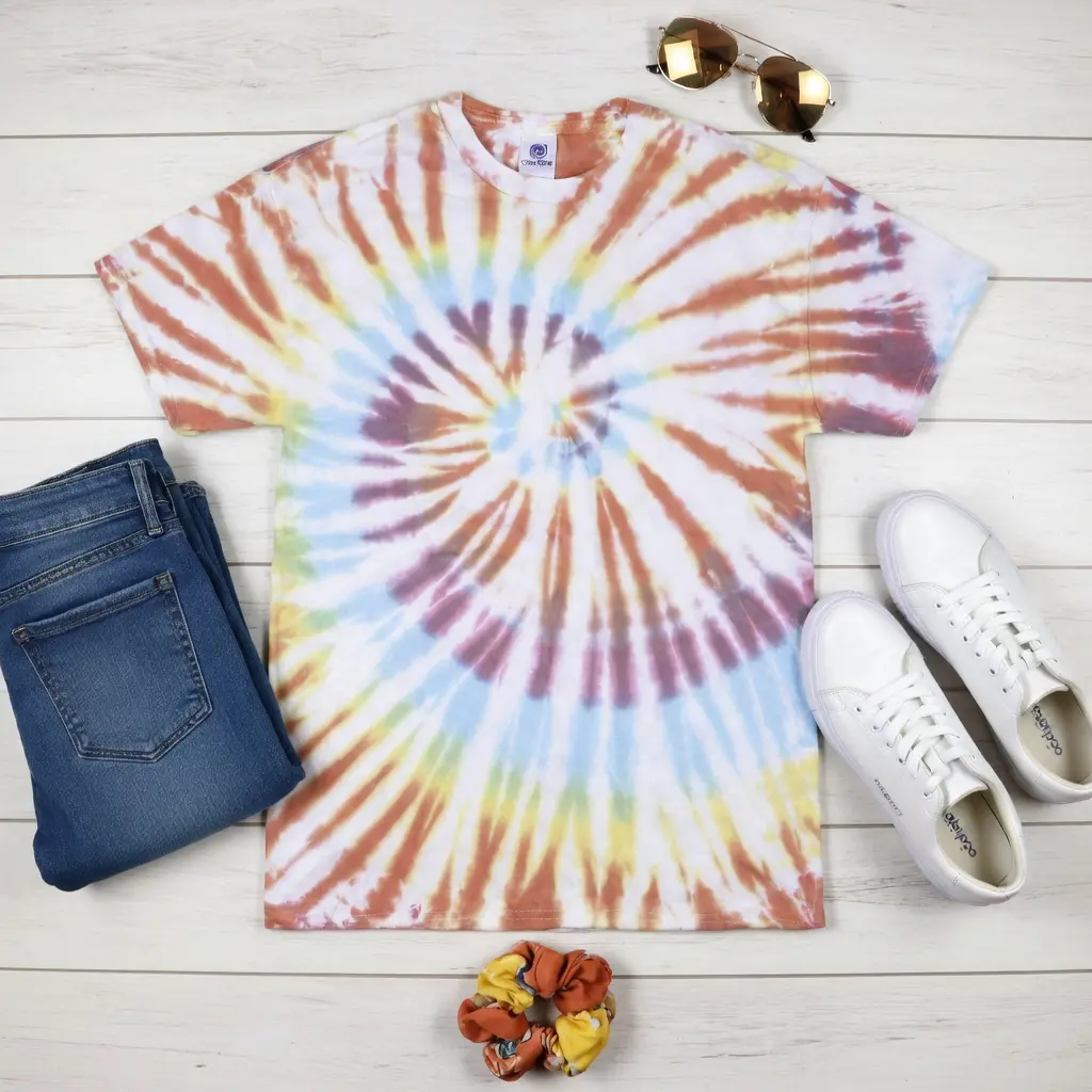 Tie Dye Short Sleeve T-Shirt 5.3 oz Preshrunk 100% Heavyweight Cotton Double-Needle Hems Taped Neck Classic Design