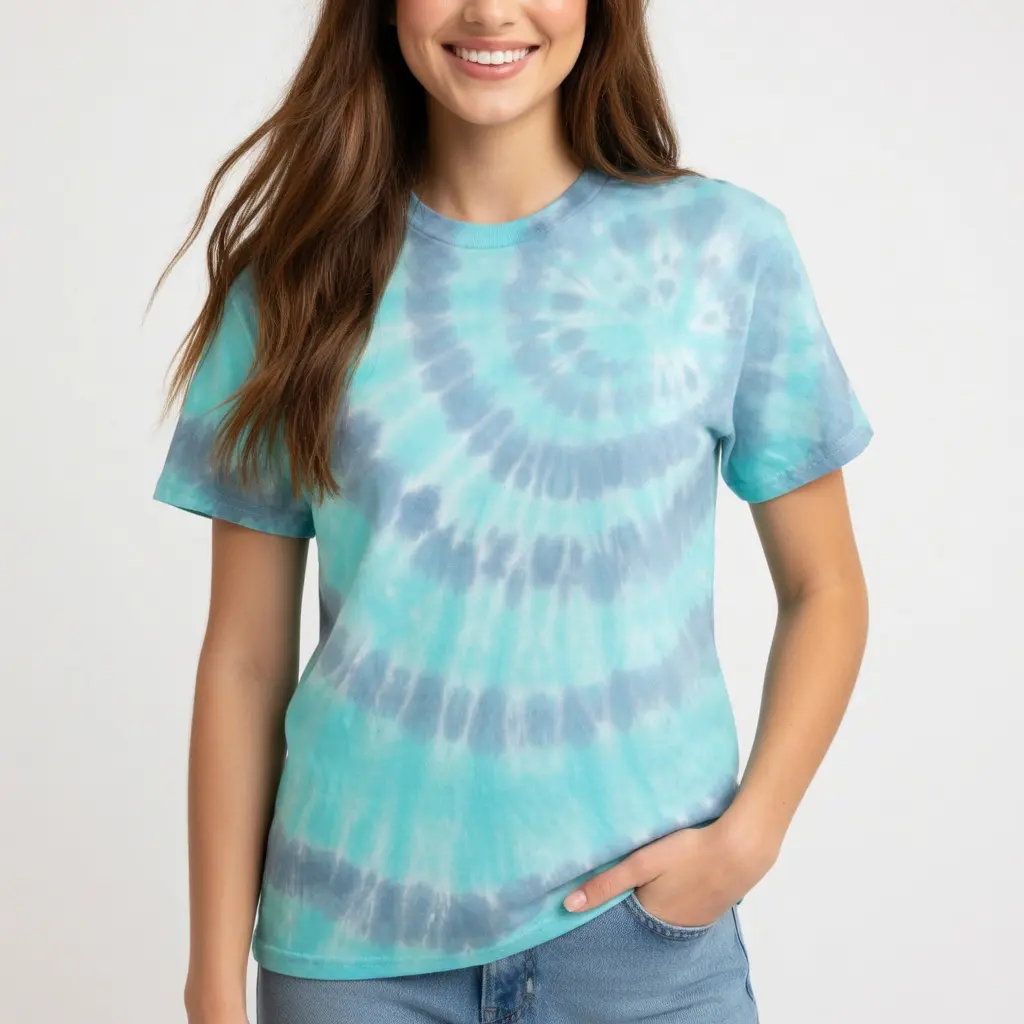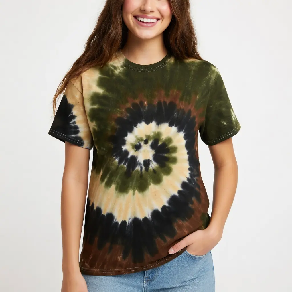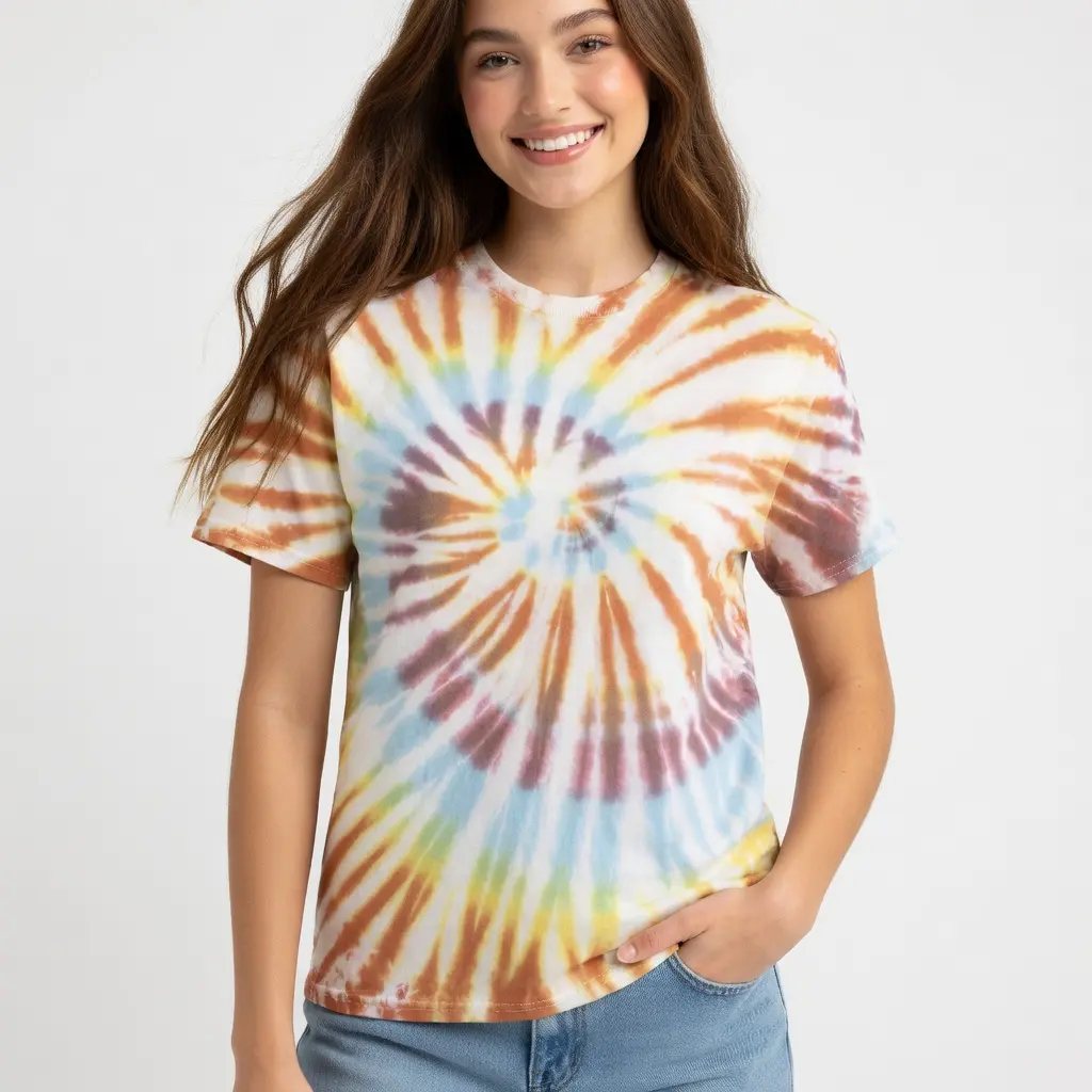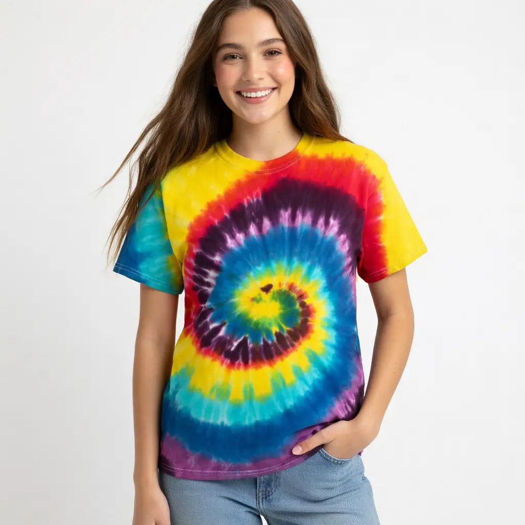 Tie Dye Short Sleeve T-Shirt 5.3 oz Preshrunk 100% Heavyweight Cotton Double-Needle Hems Taped Neck Classic Design