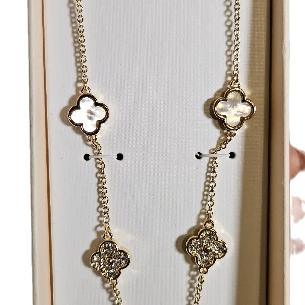 Discover the timeless charm of the Clover Necklace. This elegant piece is perfect for adding a touch of nature-inspired beauty to any outfit. The clover design symbolizes luck and positivity, making it a meaningful accessory. Ideal for everyday wear or special occasions, this necklace is a versatile addition to your jewelry collection.