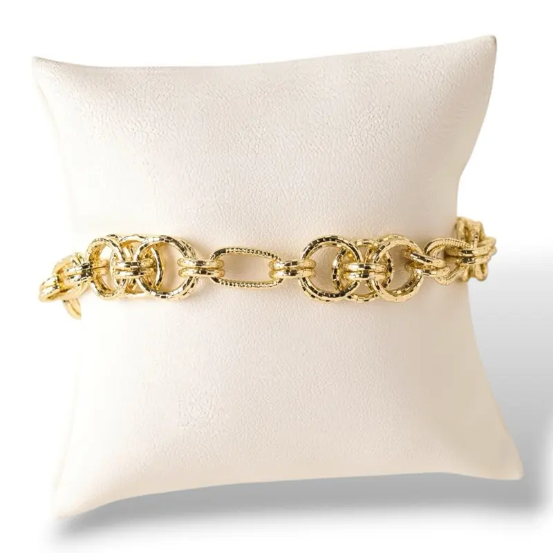 Elegant double link bracelet with a textured shine and layered design that stands out effortlessly. Adjustable with a 2-inch extension for a perfect fit.
