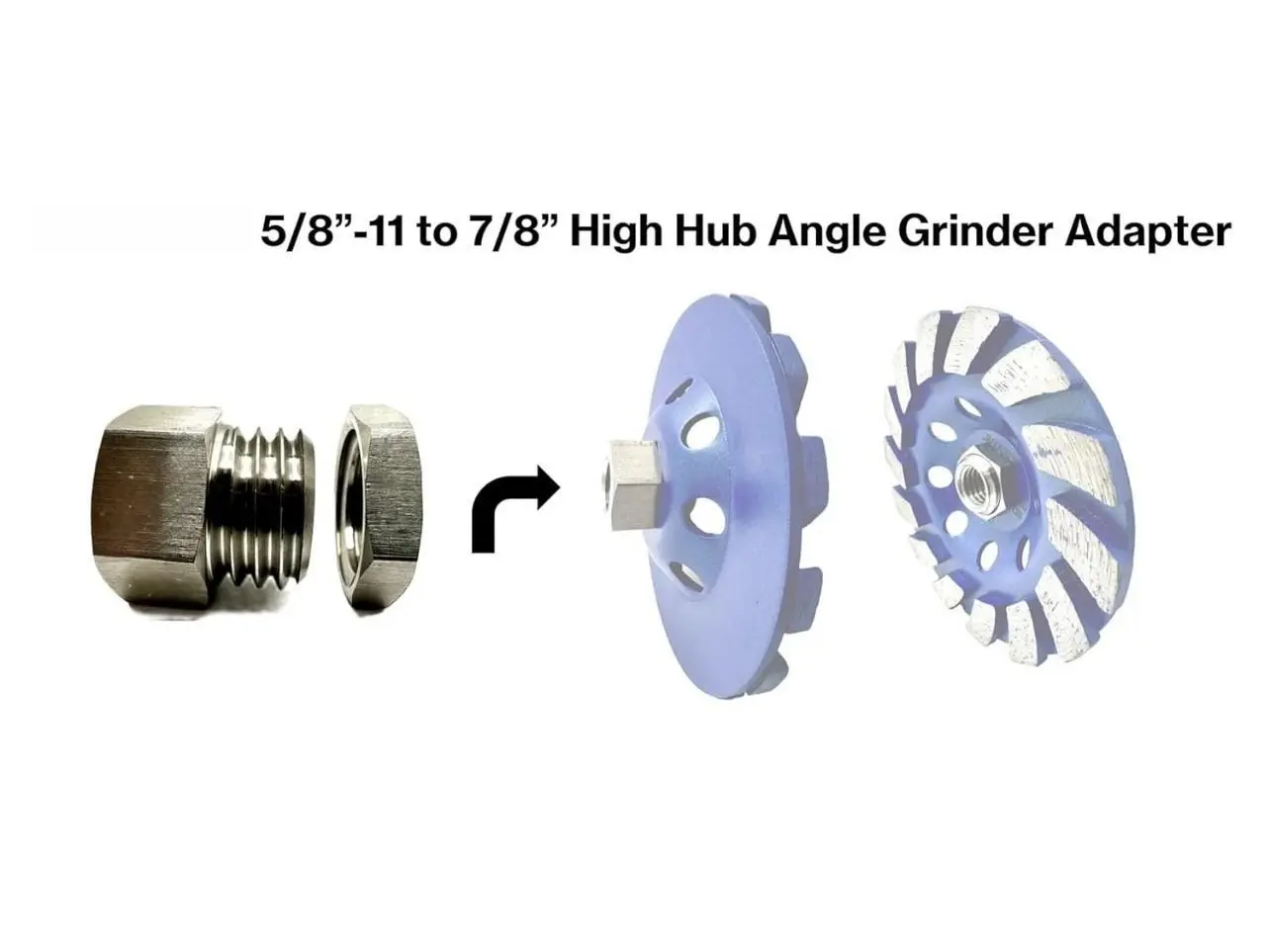 7/8" to 5/8-11 High Hub Angle Grinder Adapter for Diamond Blades & Cup Wheels, Converts 7/8" Arbor to 5/8"-11 Threaded High Hub Arbor Bore Connection