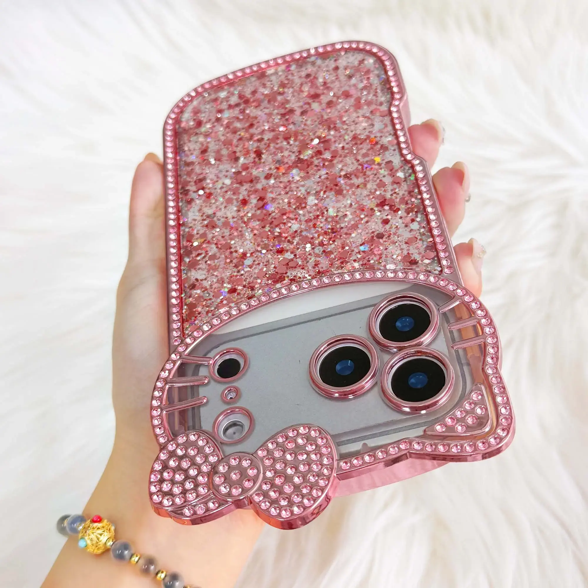 Cute Shiny Bling Sparkly Phone Case with Crystal Diamonds Shockproof Protective and Camera Protective Case for Iphone 16 Series plus 12 13 14 15 PM