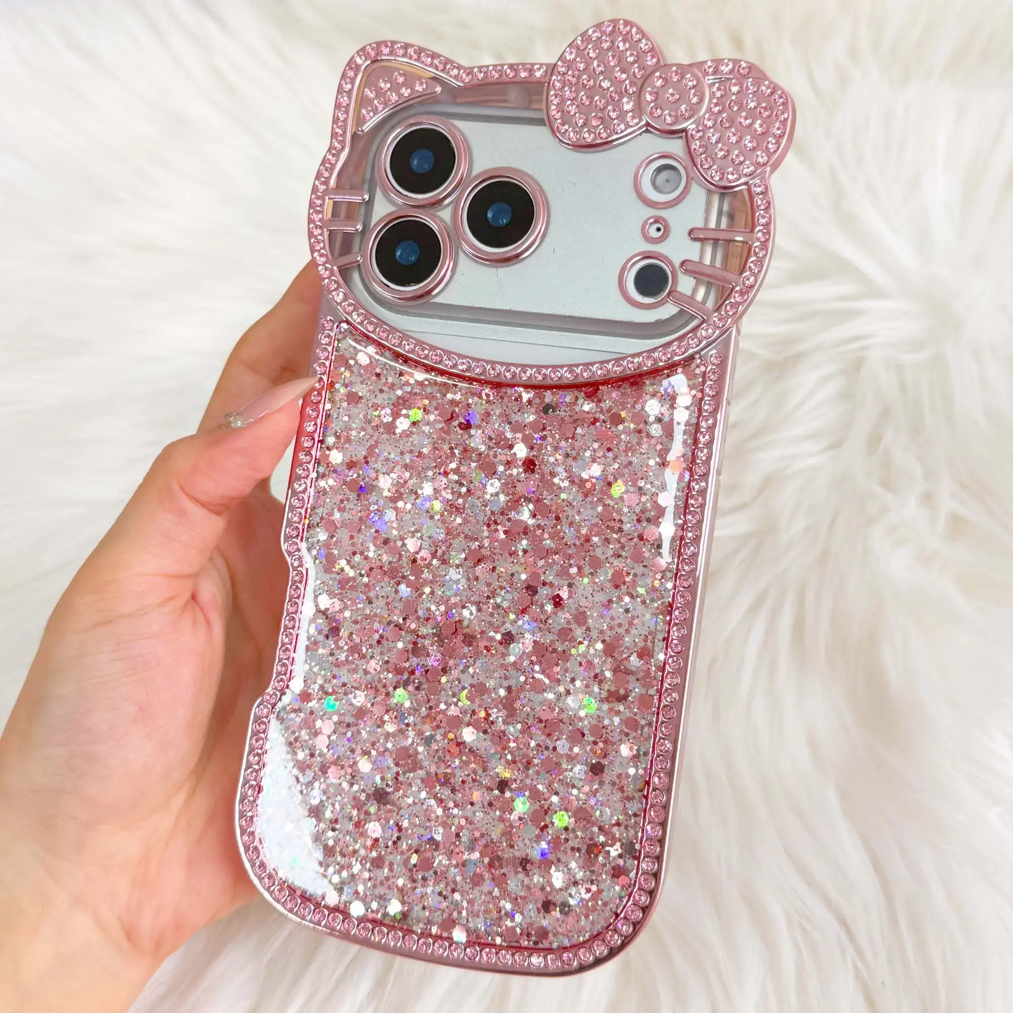 【Easy to use】Cute girly makeup mirror phone case, the phone case with mirror slides to use the mirror function anywhere and the front sides also can be used as a mirror. Easy to install and remove without scratching your phone.