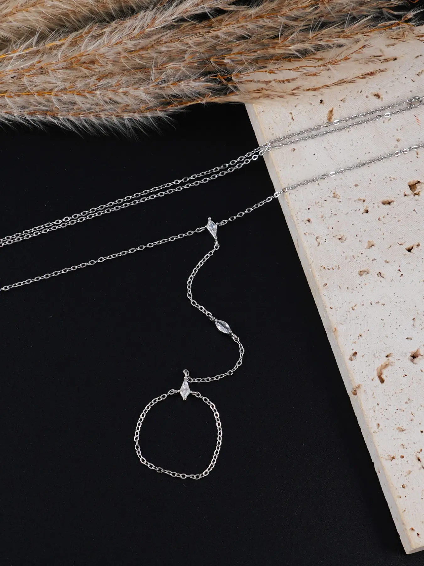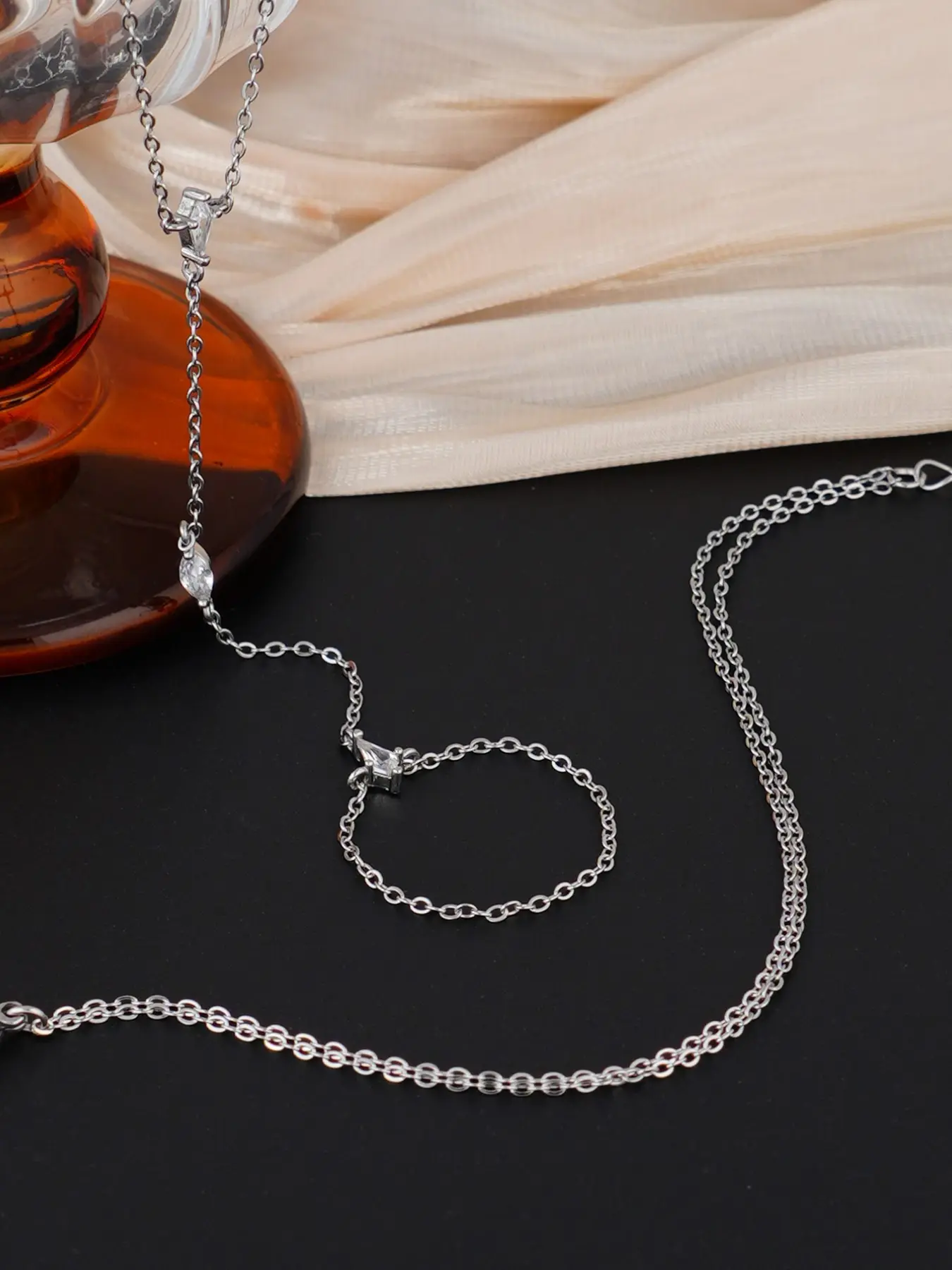 5. Women's Layered Zirconia Cubic Oxidized Finger Ring Bracelet Set, Perfect for Parties & Festivals, Sparkling Jewelry Accessories