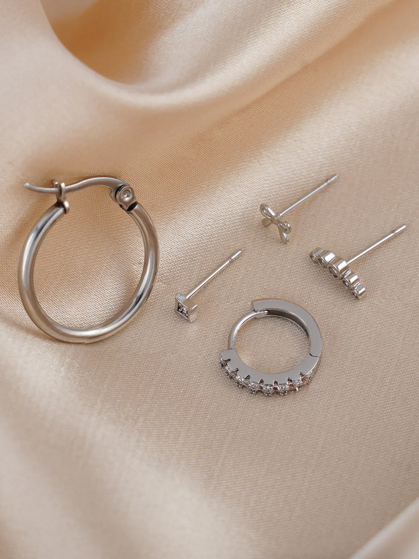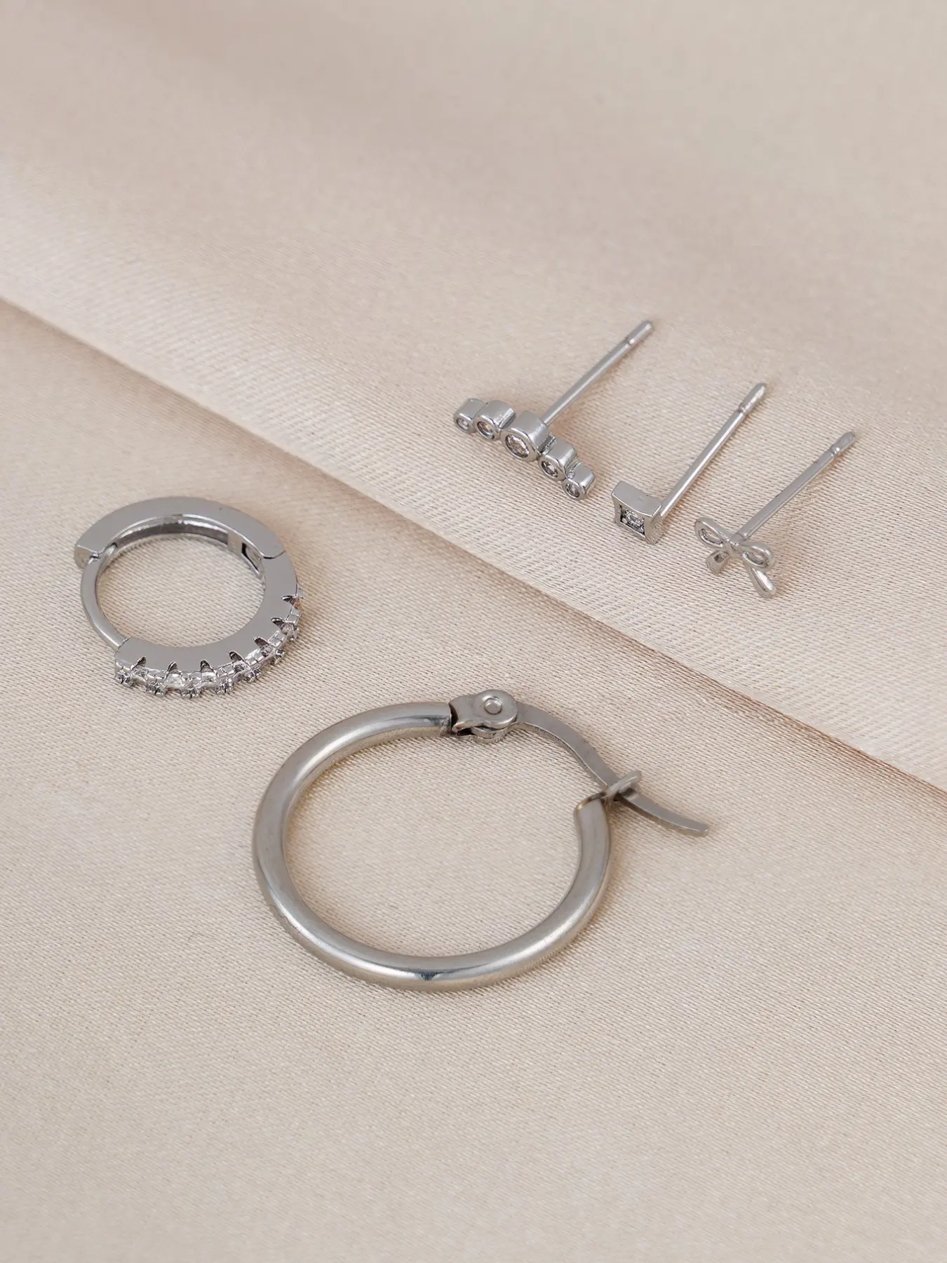 5. Women's Silver Color Bow Earrings Set, Perfect for Daily Wear & Music Festivals, Stylish Stackable Jewelry Accessories