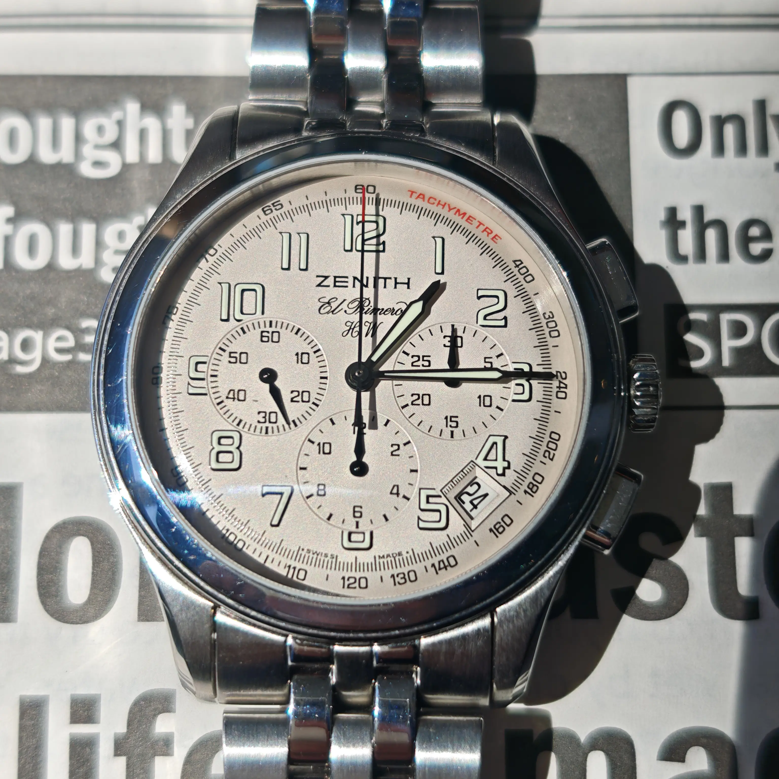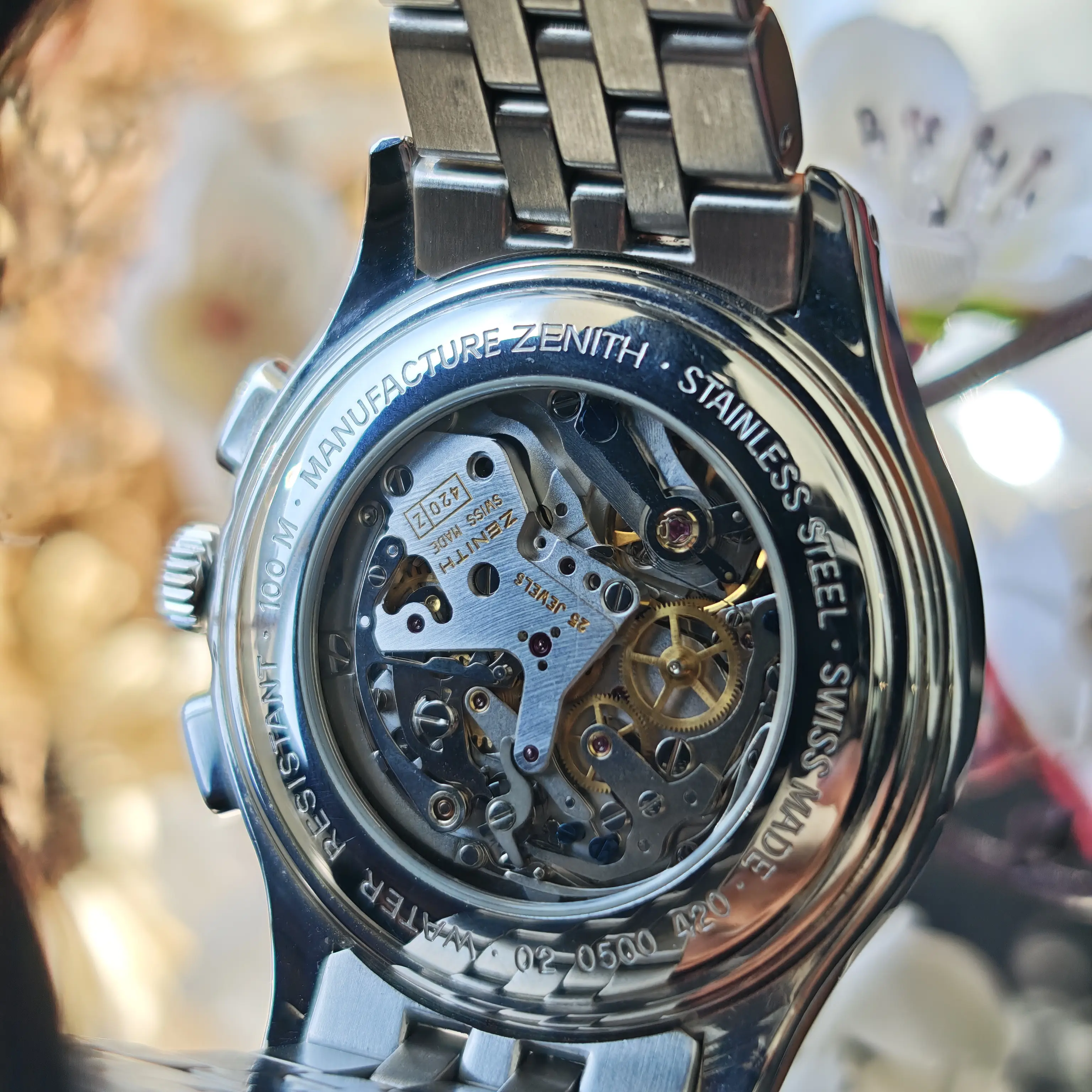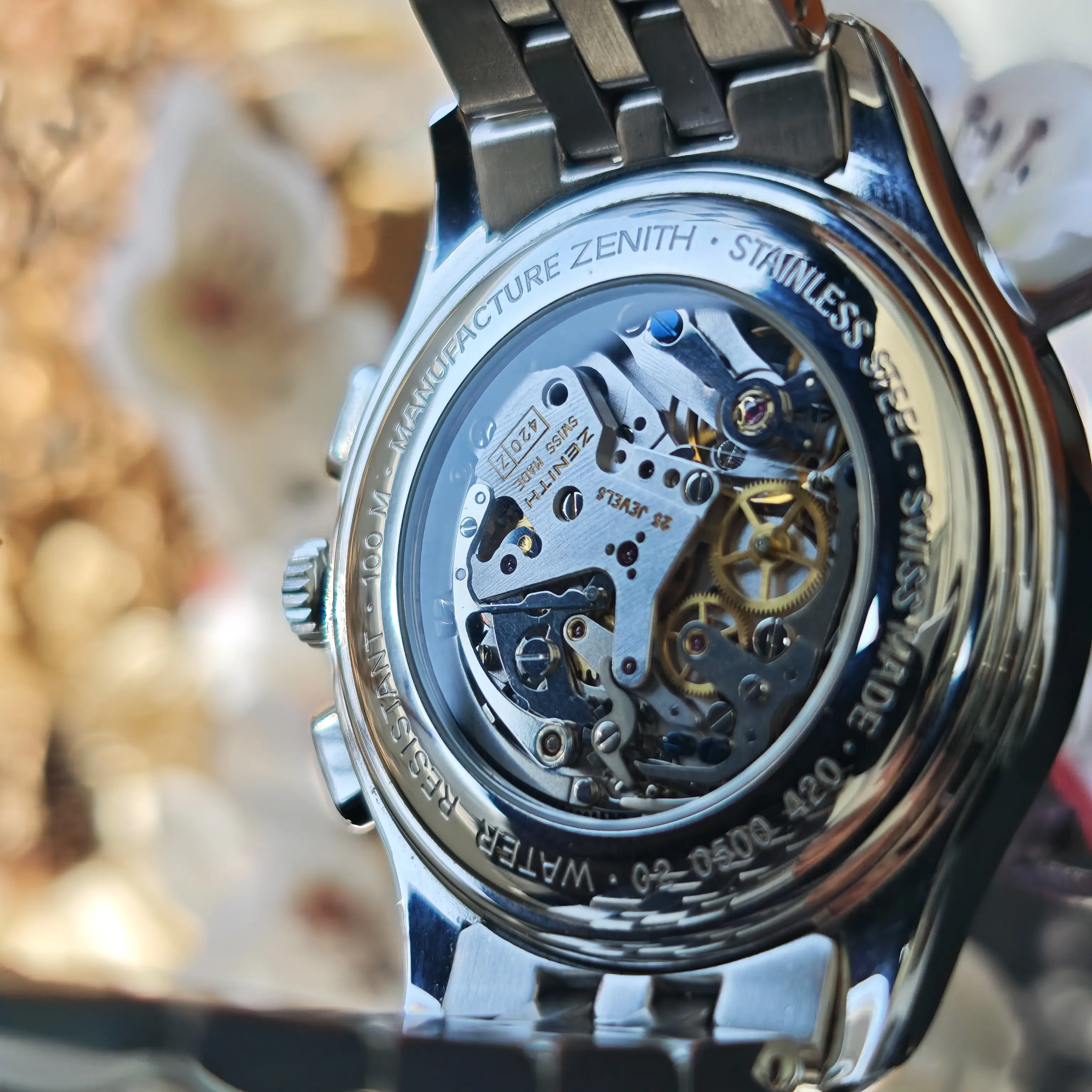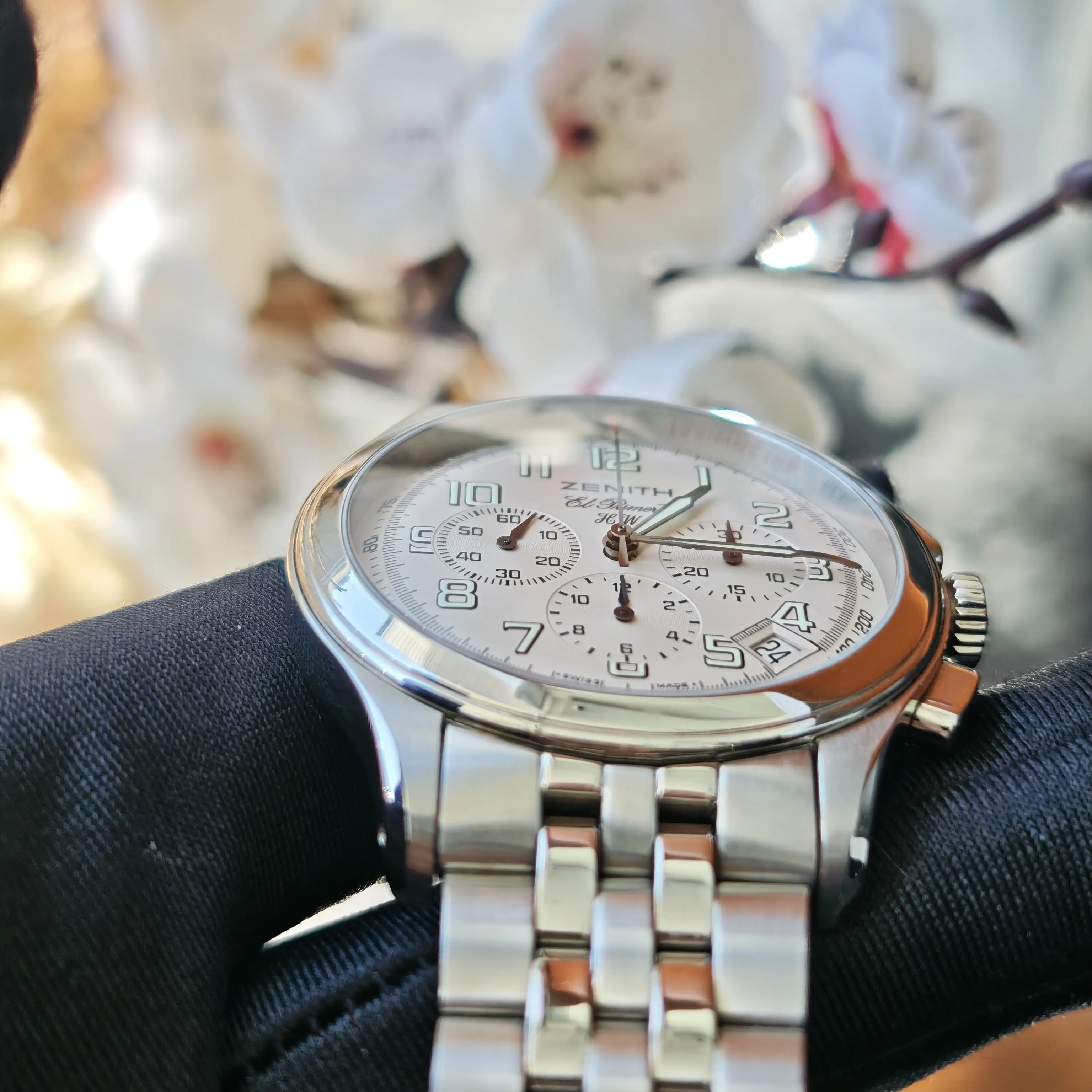 The watch is powered by the legendary El Primero high-frequency chronograph movement beating at 36,000 vibrations per hour, enabling precise 1/10th second timing and representing one of the first automatic chronograph calibers in Swiss watchmaking history; its classic 40mm case combined with an elegant dress-oriented design makes it a rare chronograph suitable for formal wear; the column-wheel mechanism and horizontal clutch system ensure smooth and precise chronograph operation while maintaining traditional serviceability; as a discontinued model, it represents Zenith’s golden era of mechanical watchmaking from the 1990s to early 2000s and offers strong collectability and value; furthermore, the design carries the DNA of the original 1969 El Primero, making it historically significant and timeless.