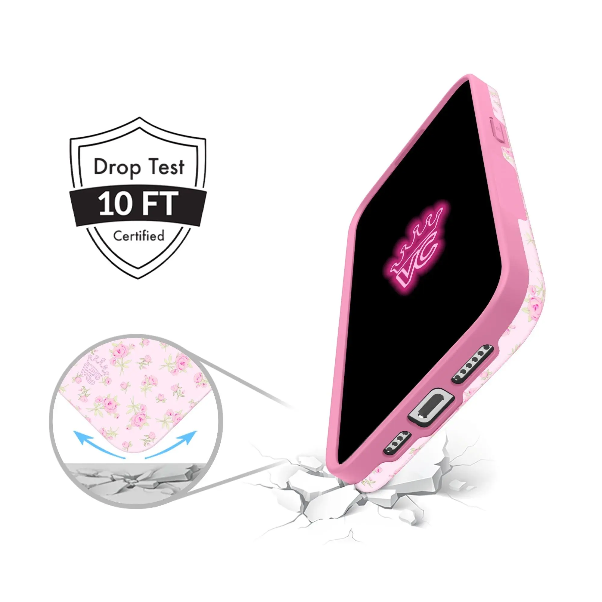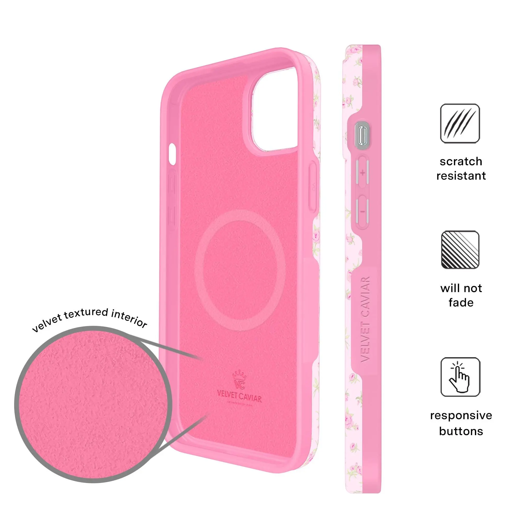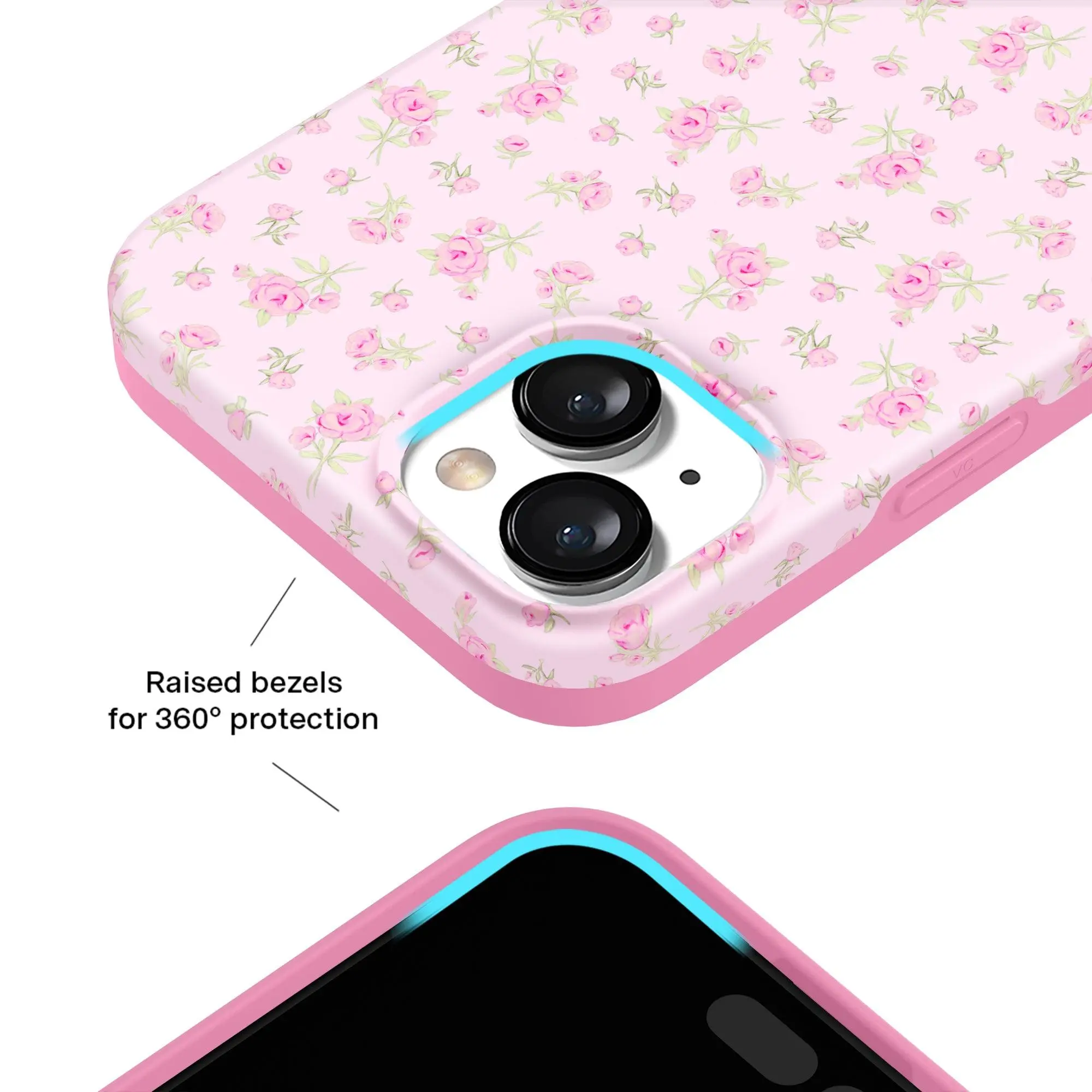 Dare to dream! Keep your head in the clouds with this beautiful MagSafe case featuring an array of dainty pink florals on a pale pink base with a medium pink bumper.