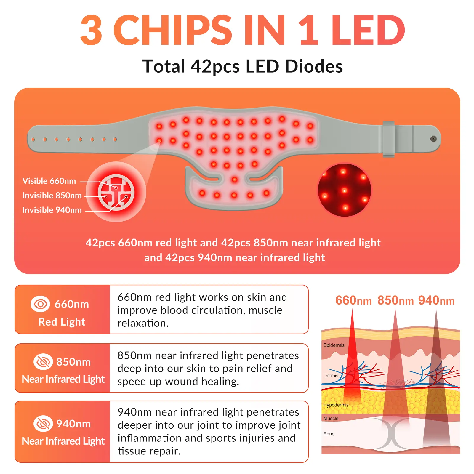 Wavelength: 940nm+850nm+660nm (work together)