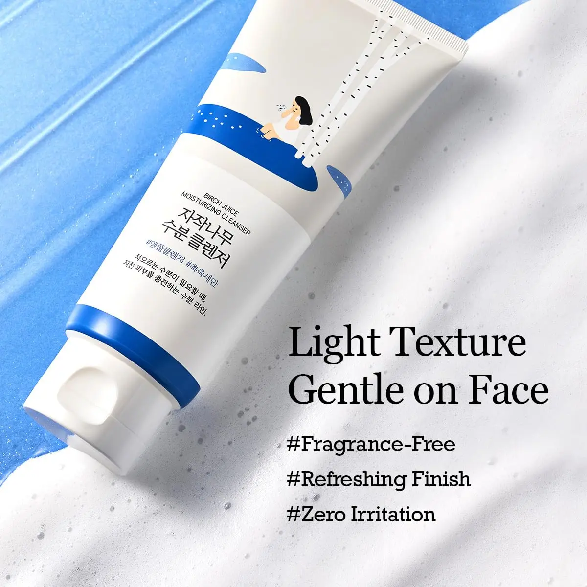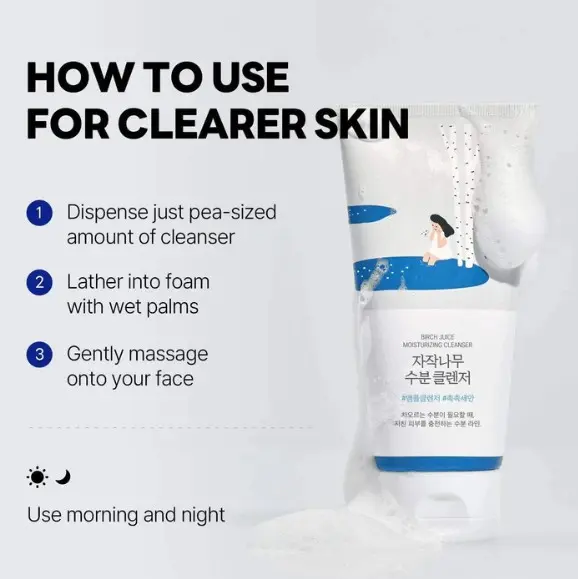 ROUND LAB Birch Juice Moisturizing Cleanser is a soft, watery gel-type foam cleanser that gently purifies and hydrates your skin, leaving it smooth and refreshed. Cleanser unclogs pores and removes dead skin cells.
