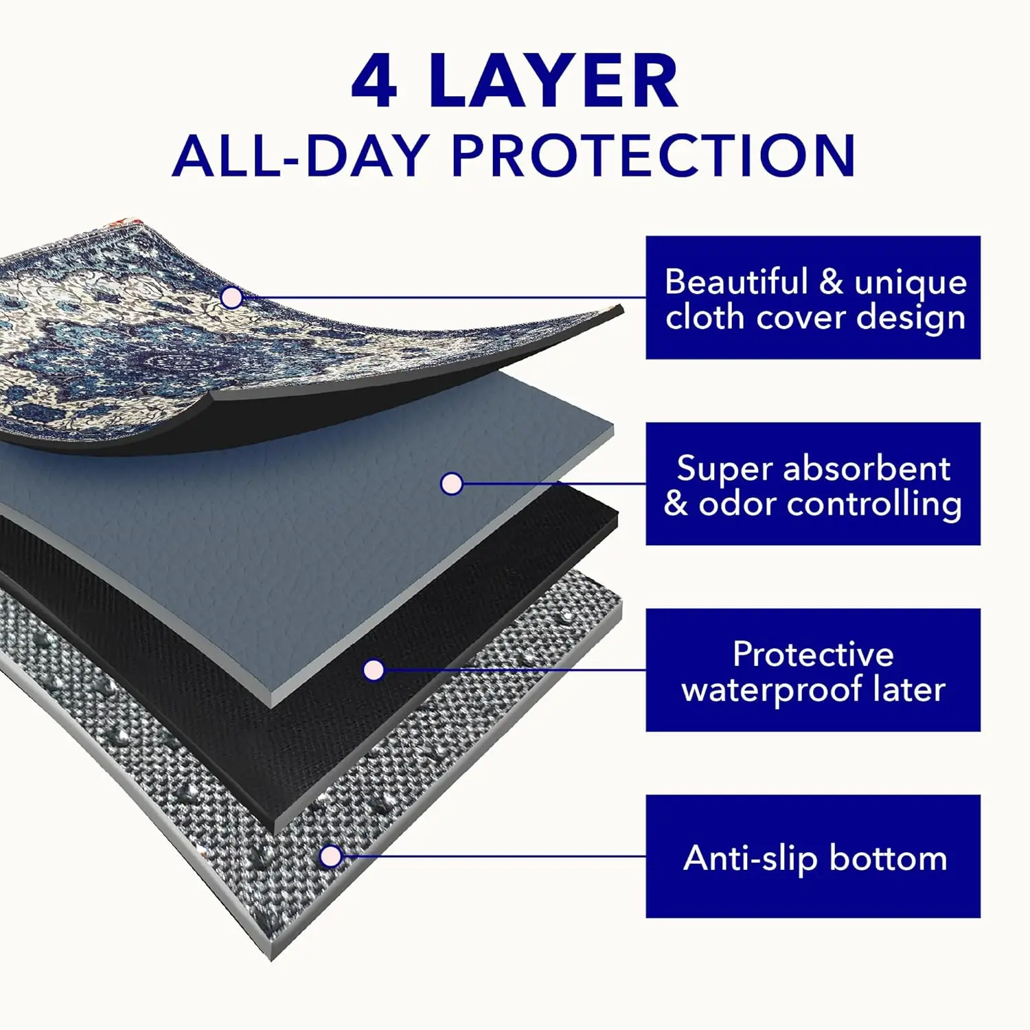 ·Maintains Absorption After 500+ Washes - Ultra-absorbent and leak-proof washable dog pee pads.Our multi-layered reusable puppy pads feature a waterproof TPU coating that effectively absorbs and retains liquid, preventing leaks and odors.Designed to withstand repeated washing & urine soaking, these durable whelping pads are perfect for housebreaking, incontinence, or post-surgery care.The non-slip backing keeps the pad securely in place, making it ideal for use on hardwood floors or in crates.