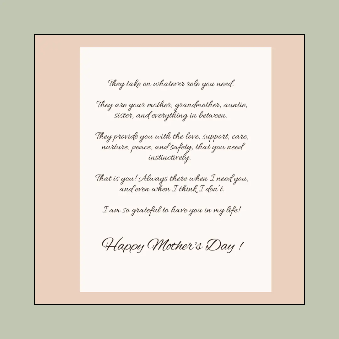 Every woman has that special woman in their life that has taken them under their wing and loved on them just when they needed it. Celebrate the special woman in your life with this Mother's Day card. Featuring a heartwarming message and a photo of two women, this card honors the women who bless our souls and play nurturing roles in our lives. Perfect for showing appreciation to the remarkable women in your life.