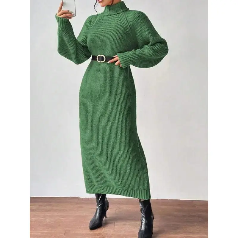 Women's Sexy Basic Long Sleeve Turtleneck Bodycon Party Long Pencil Dress