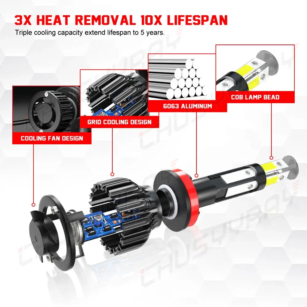 Specifications: * Brand: CHUSYYRAY * Condition: 100% Brand New * Light Source:4 Sides COB Light * Material: Aviation Aluminum * Color Temperature: 6000K * Working Voltage: 12V * Output Power (Each): 40W * Number of Bulbs: 2 * Waterproof Rate: IP67 * Luminous Flux: 4000lm/ Bulb * Working Temperature: -40℃ - +80℃ * Bulb Type: H11/H8/H9/H16 * Beam Angle: 360 Degrees * Lifespan: Over 50,000 hours * Heat Dissipation Principle: Heat Pipe Technology + Aluminum Radiator * Fitment Type: Direct Replacement * Placement on Vehicle: Front, Left, Right * Color: As the picture shows