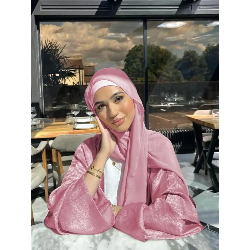 5. Women's Glossy Solid Batwing Sleeve Abaya without Hijab, Elegant Long Sleeve Open Front Abaya for Party Holiday Daily Wear, Islamic Abaya, Muslim Clothes for Women
