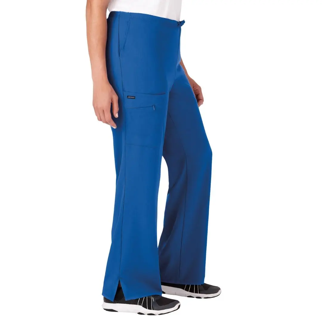 Stay comfortable and professional with the Jockey® 2249 Ladies’ Cargo Pant. Designed for women in healthcare, it features a half elastic back and front drawstring for a secure, adjustable fit. The mid-rise silhouette and slightly flared leg create a flattering look, while multiple pockets, including a zippered cargo pocket, keep your essentials close.
