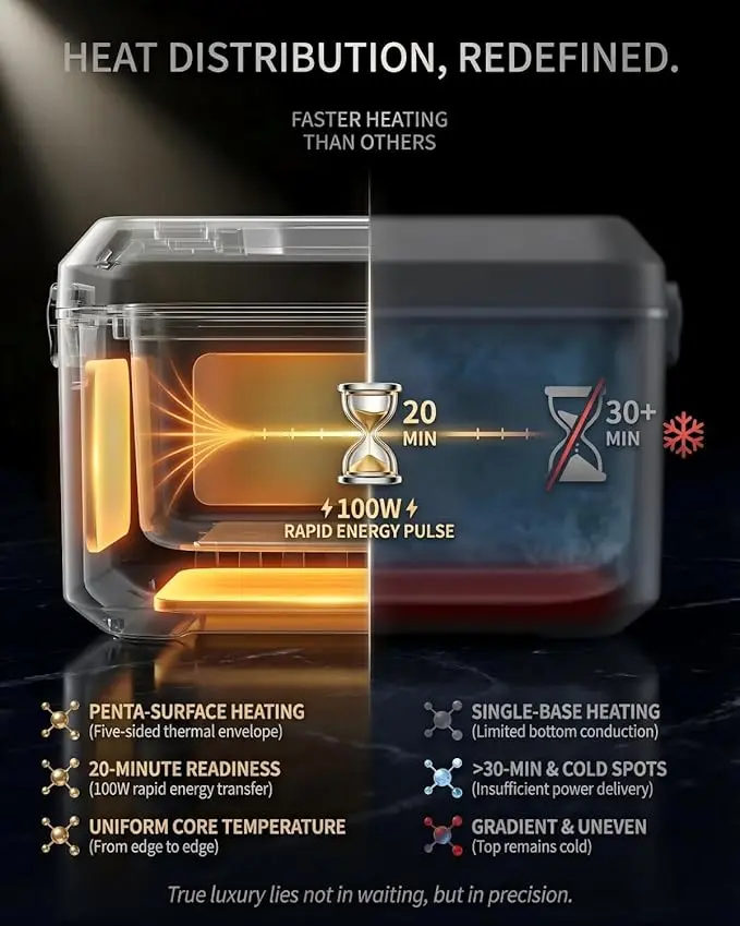 ·【Industry-Leading Power with 100W Fast Heating】 Powered by a massive 24000mAh battery, this wireless lunch box outperforms competitors. The 100W rapid-heating technology ensures your meal is ready in minutes, not hours—perfect for camping trips, long commutes, or busy work shifts. With long-lasting battery life and speedy performance, enjoy hot meals anytime without searching for power outlets.
