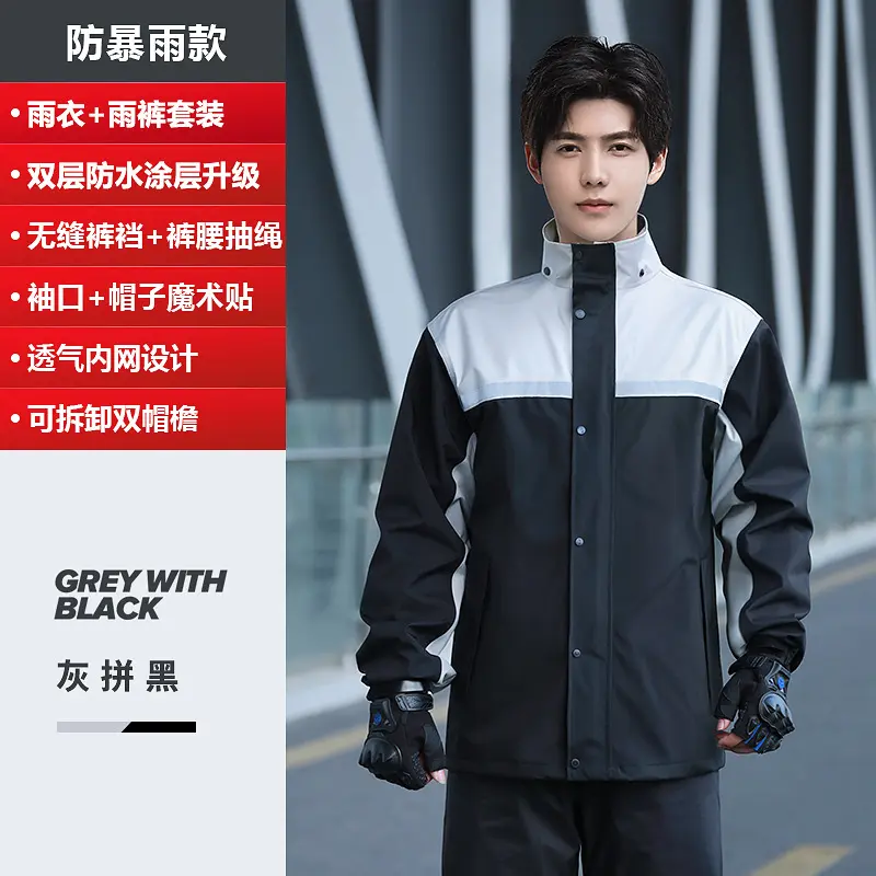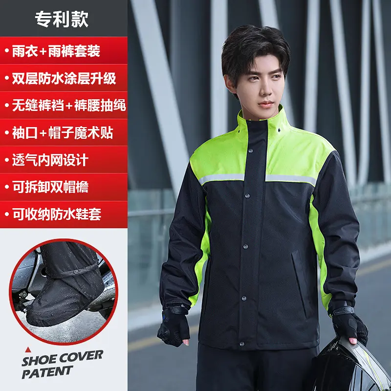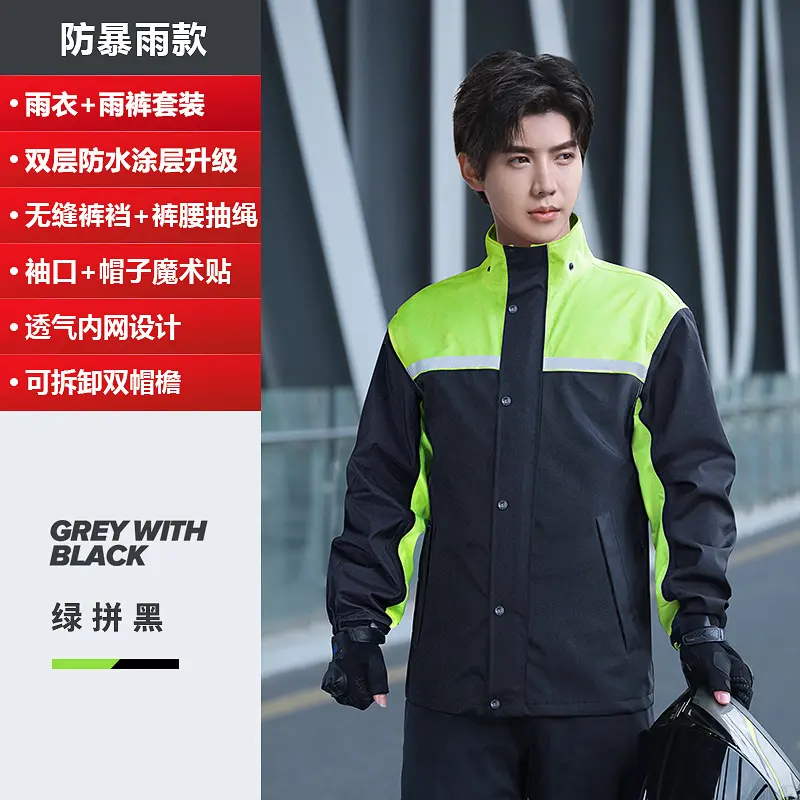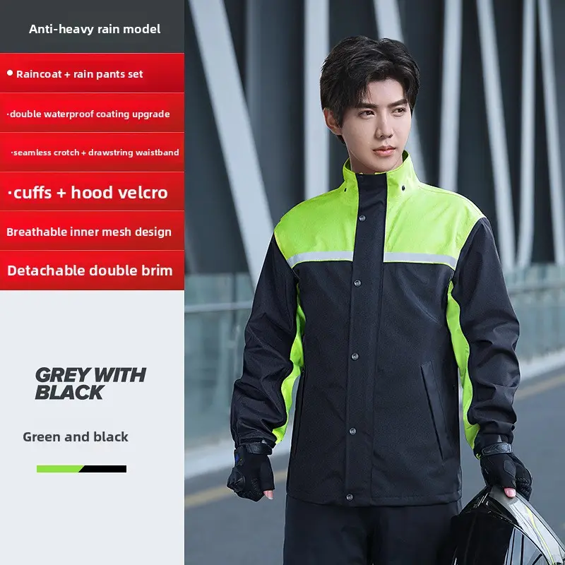 Men'S Raincoat And Rainpants Set, Two-Piece Long Style, Full-Body Rain Protection, Specifically Designed For Electric Motorcycle Delivery Riders Men'S Rain Suit High Visibility Reflective Work Rain Jacket Pants For All Sport Farm Fishing Motorcycle