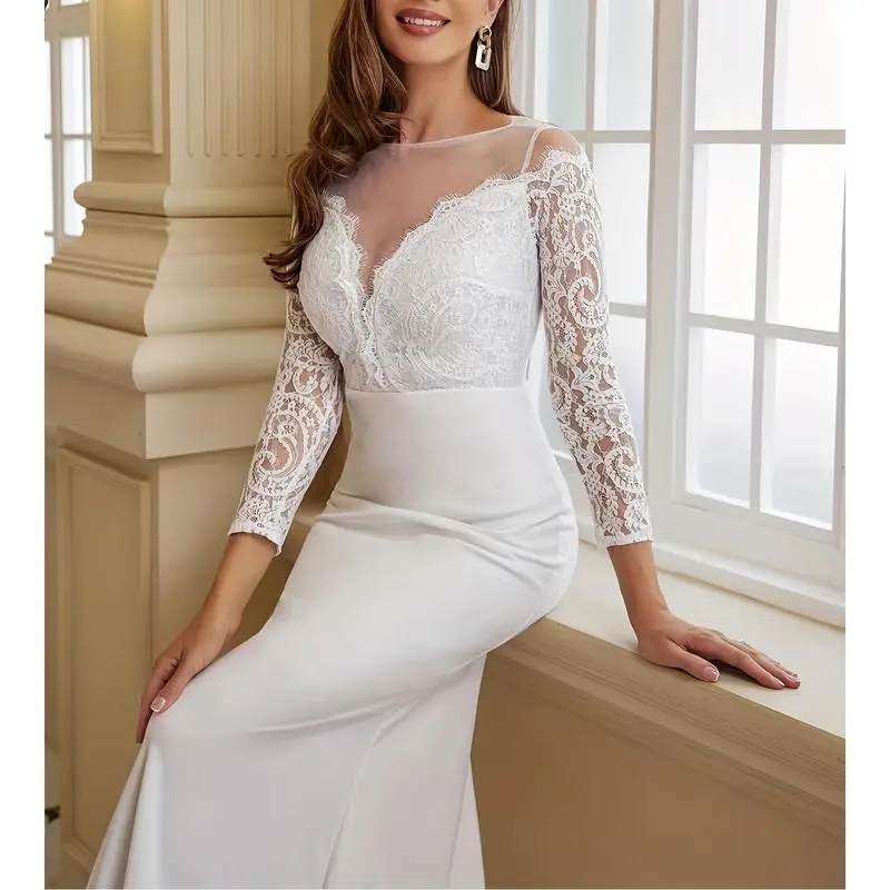 Lace Floor Length Wedding Dress, Elegant Dress For Wedding Party, Women's Clothing,summer outfits,spring outfits,wedding guest dresses Womenswear Workwear wedding dress