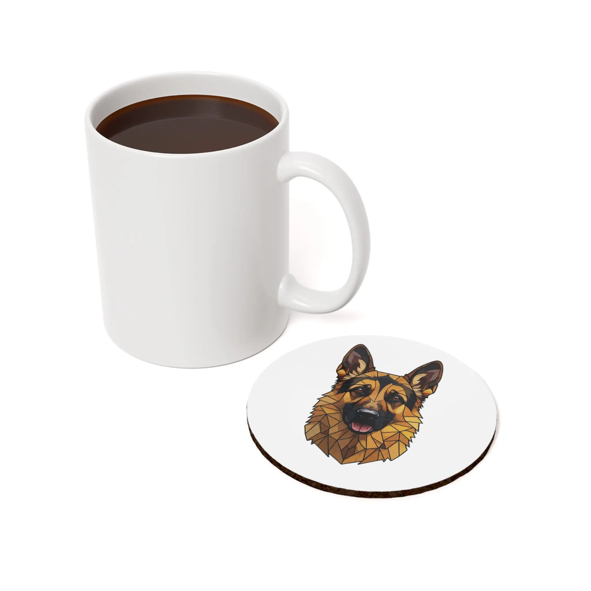 German Shepherd Cork-Back Coaster — Monochrome Gold
