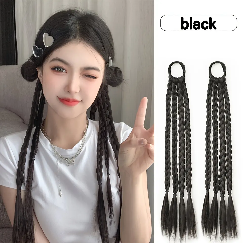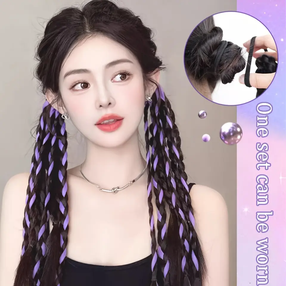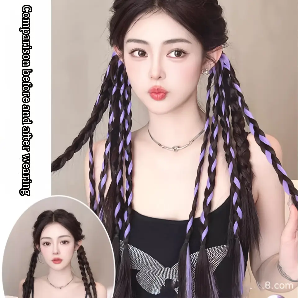 2-piece set 18inch synthetic wig, featuring colorful short sock braids, designed with elastic bands, perfect for daily wear or parties