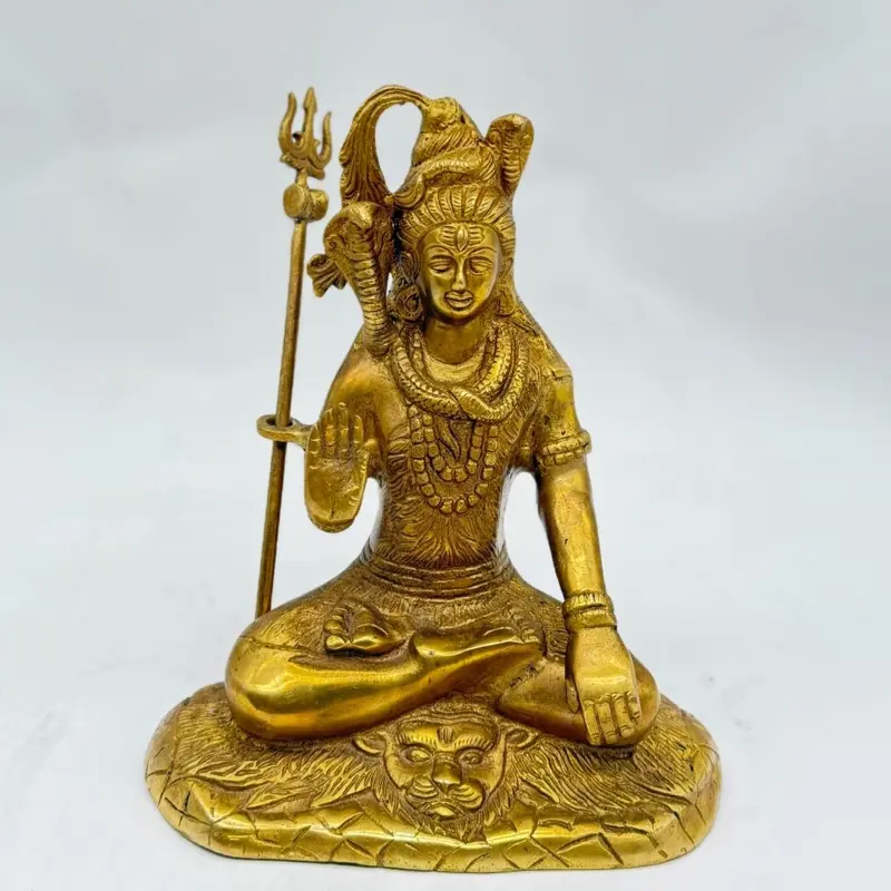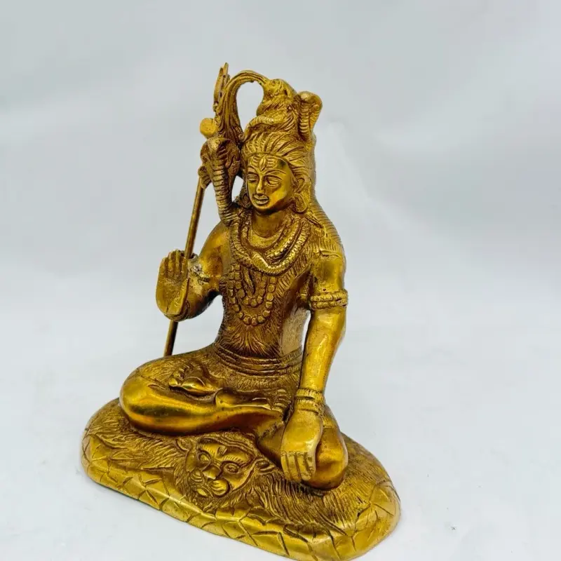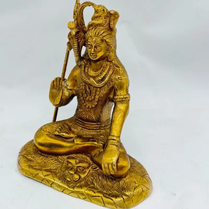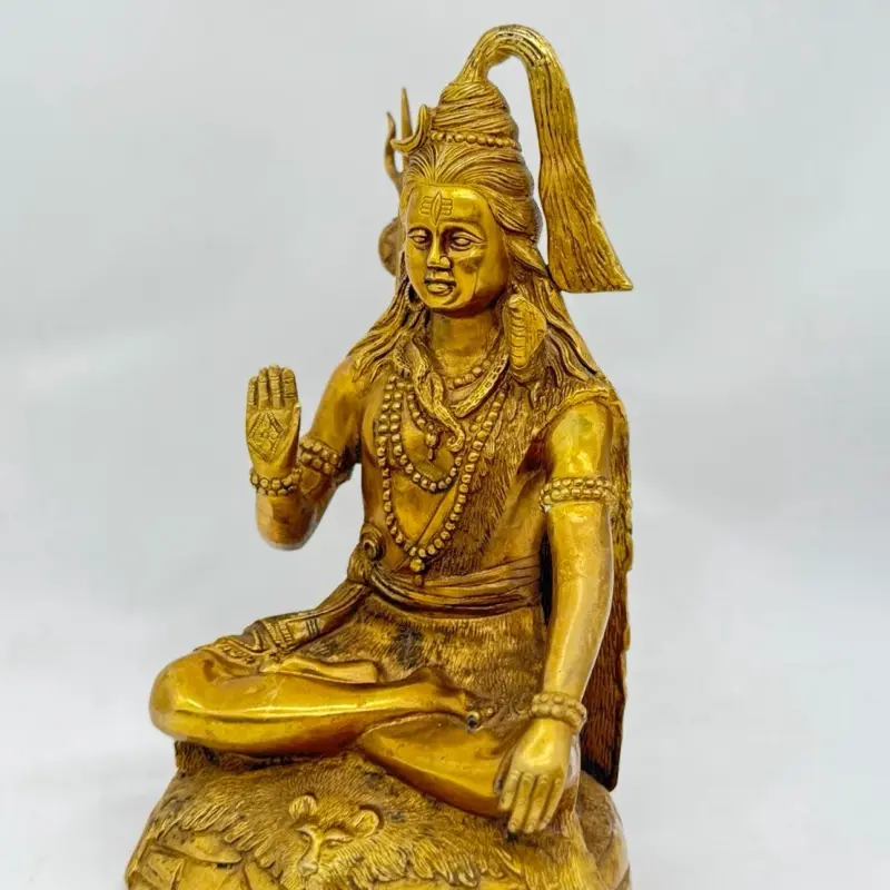 Mahadev Golden Shine Two Sizes Pure Brass Statue for Home Decor and Spiritual Practice High-Quality Brass Material