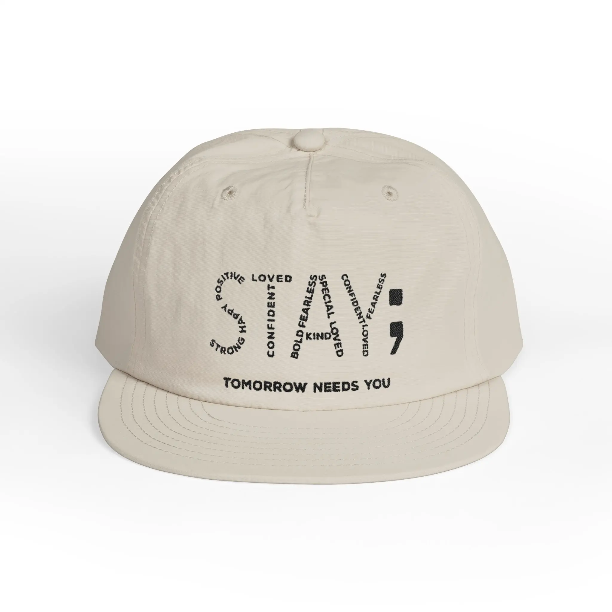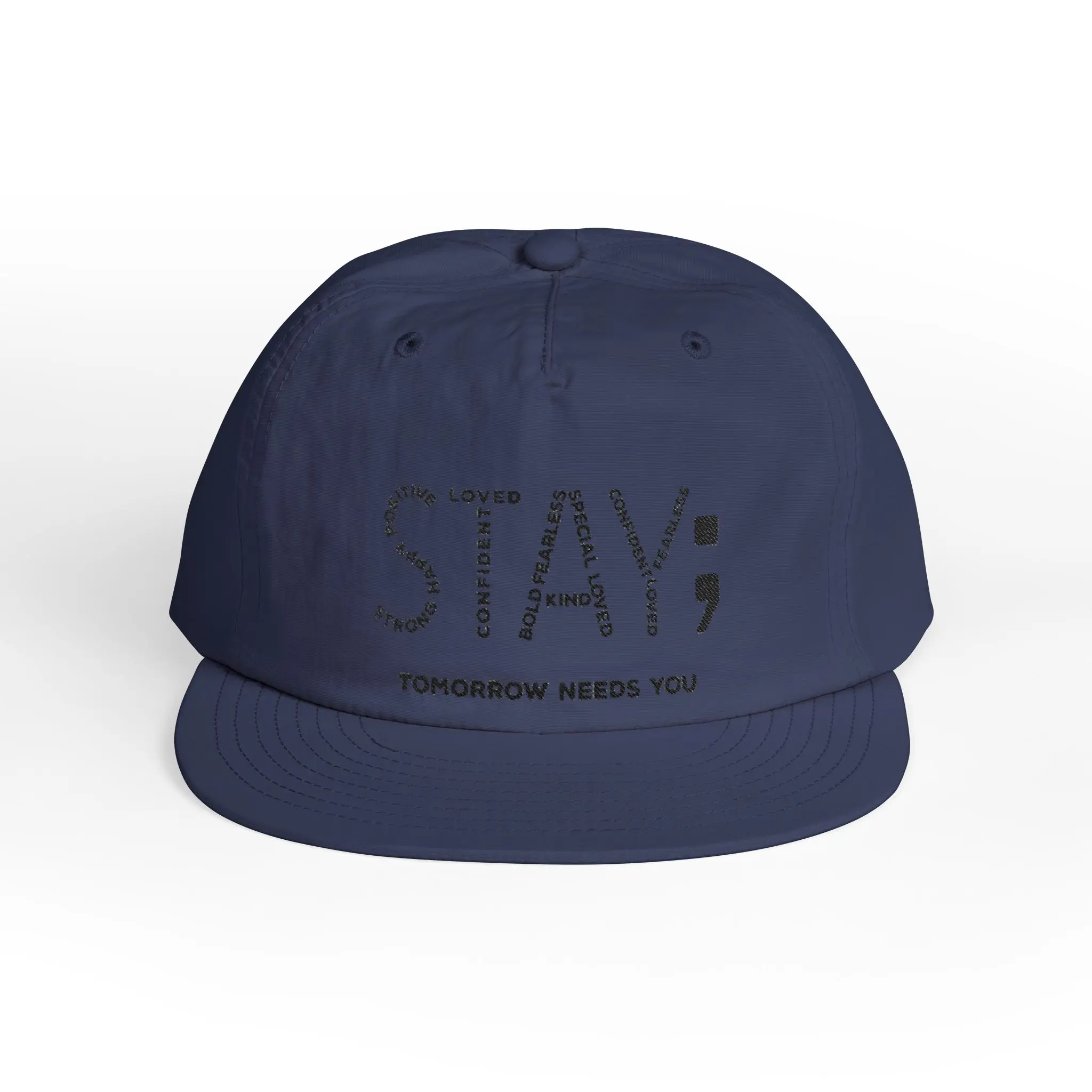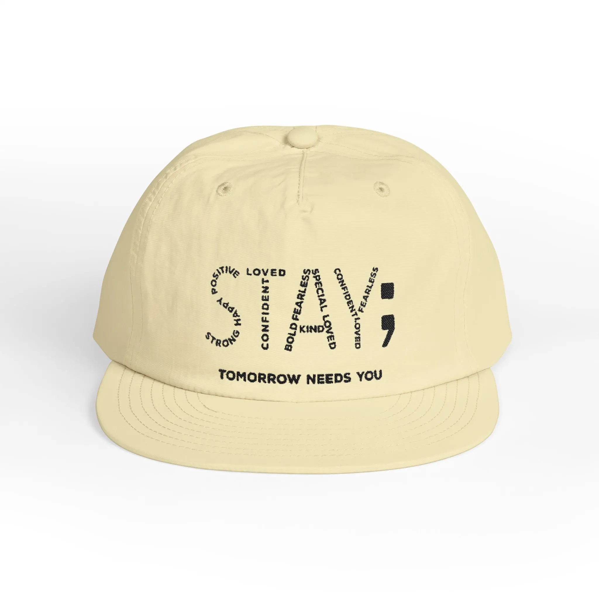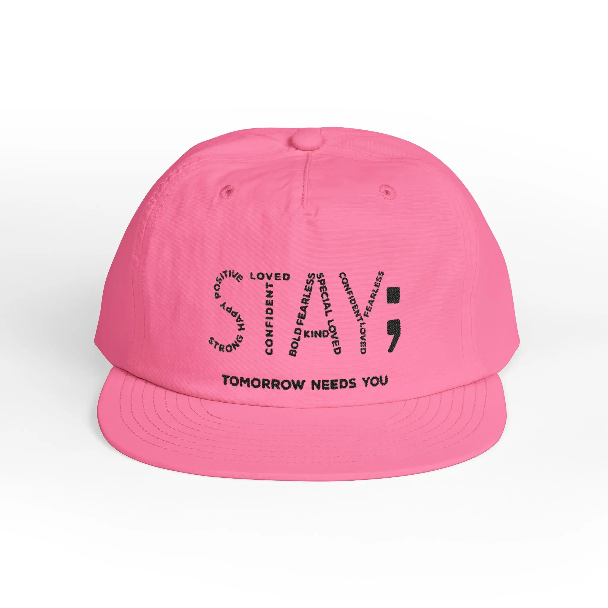 This “Tomorrow Needs You” semicolon embroidered hat is a powerful reminder that your story isn’t over. Featuring a meaningful semicolon design filled with words like strong, loved, fearless, and worthy, this hat represents resilience, healing, and hope.