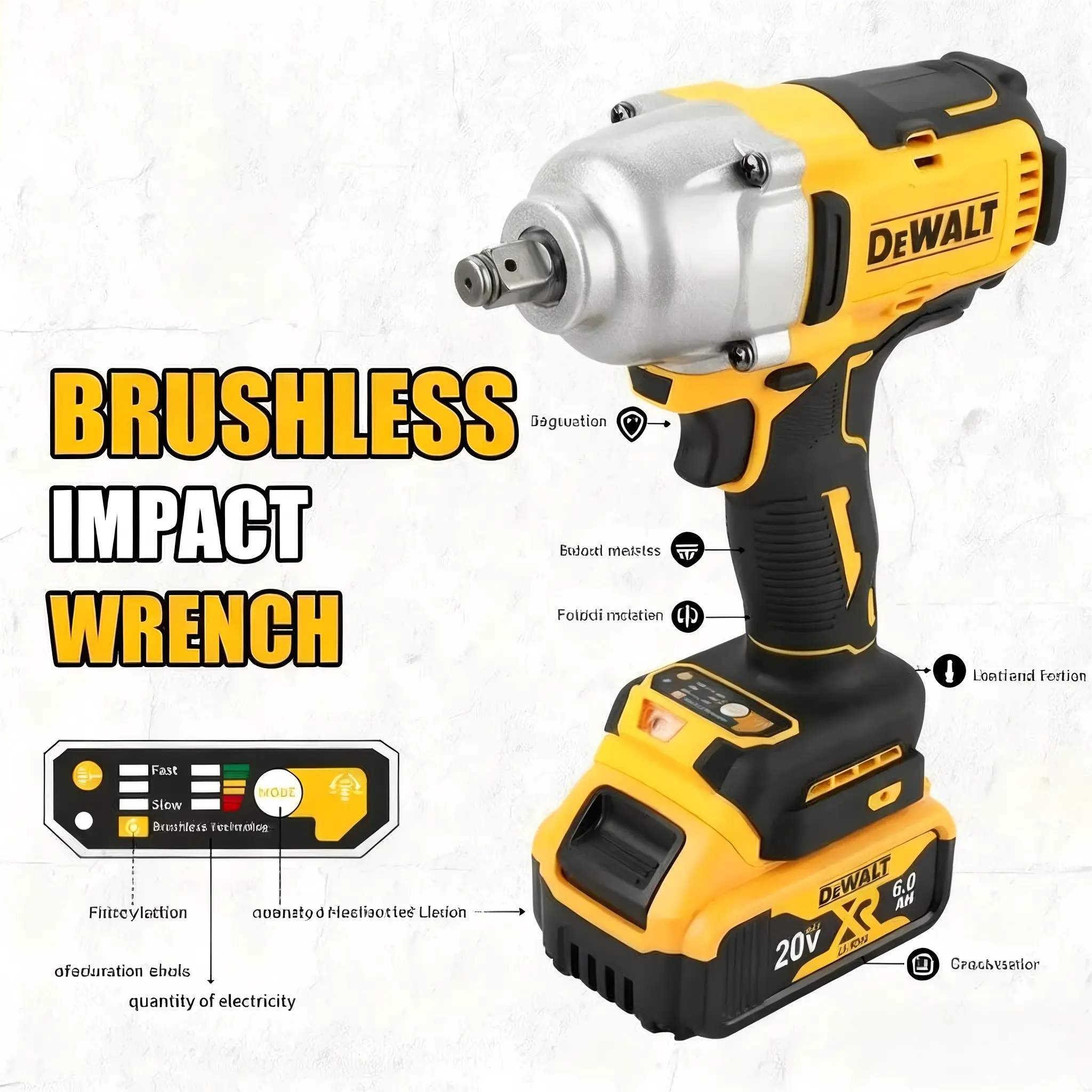 DEWALT DCF900 20V Brushless 1/2" Cordless Impact Wrench, 850Nm High Torque, 6.0Ah Li-ion, Multi-Speed Power Tool for Automotive & Industrial Pro Use
