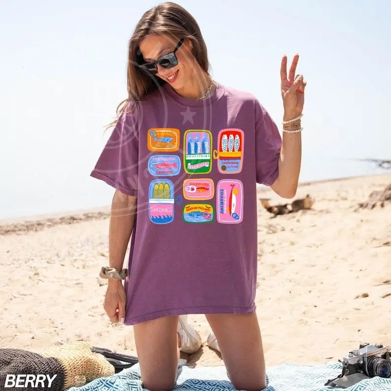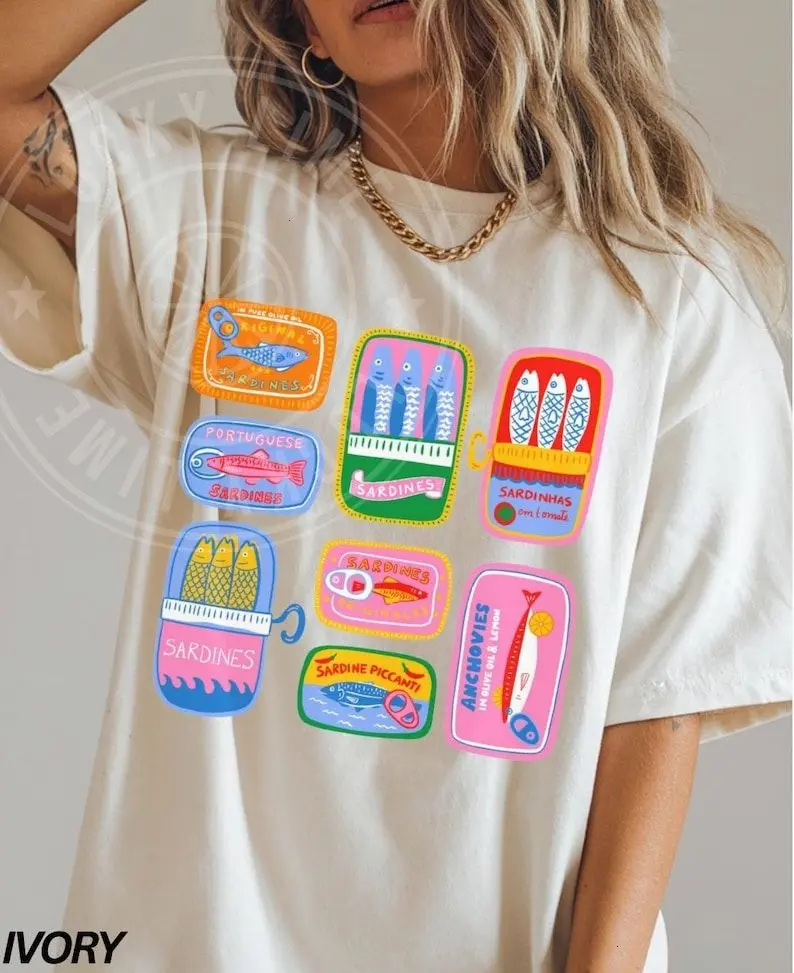5. Comfort Sardine Shirt, Fisherman Aesthetic, Tinned Fish Shirt, Beach Shirt, Sardines Portugal Tshirt, Preppy Summer