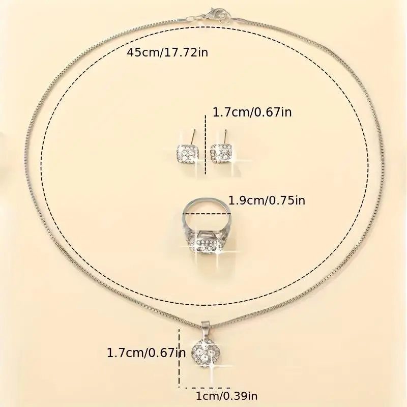 Elegant S925 Silver Pendant Necklace, Earrings and Ring Set, Unisex Style