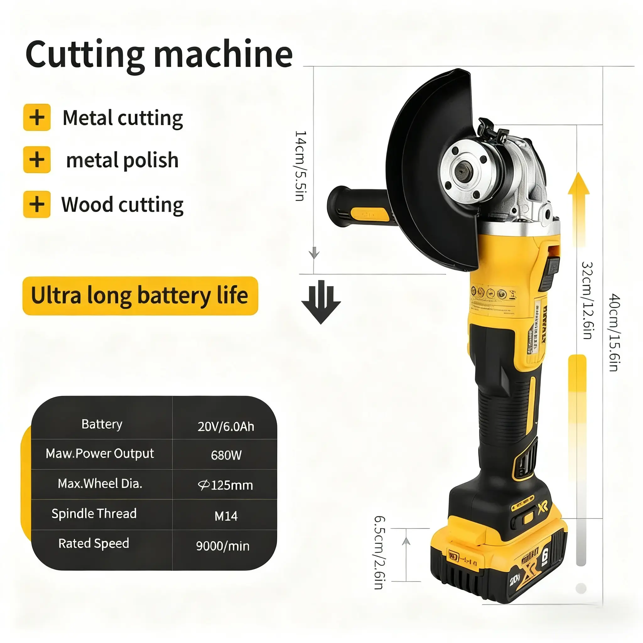·Powerful Performance: This 125mm angle grinder delivers 9000RPM, making it ideal for cutting, grinding, and polishing tasks. Powered by Li-ion, it offers versatile use in various applications. 🌟