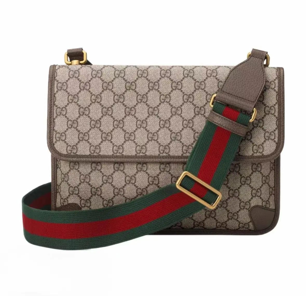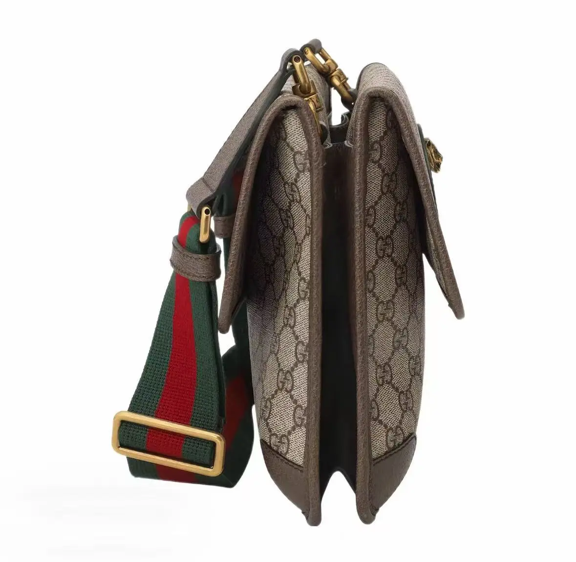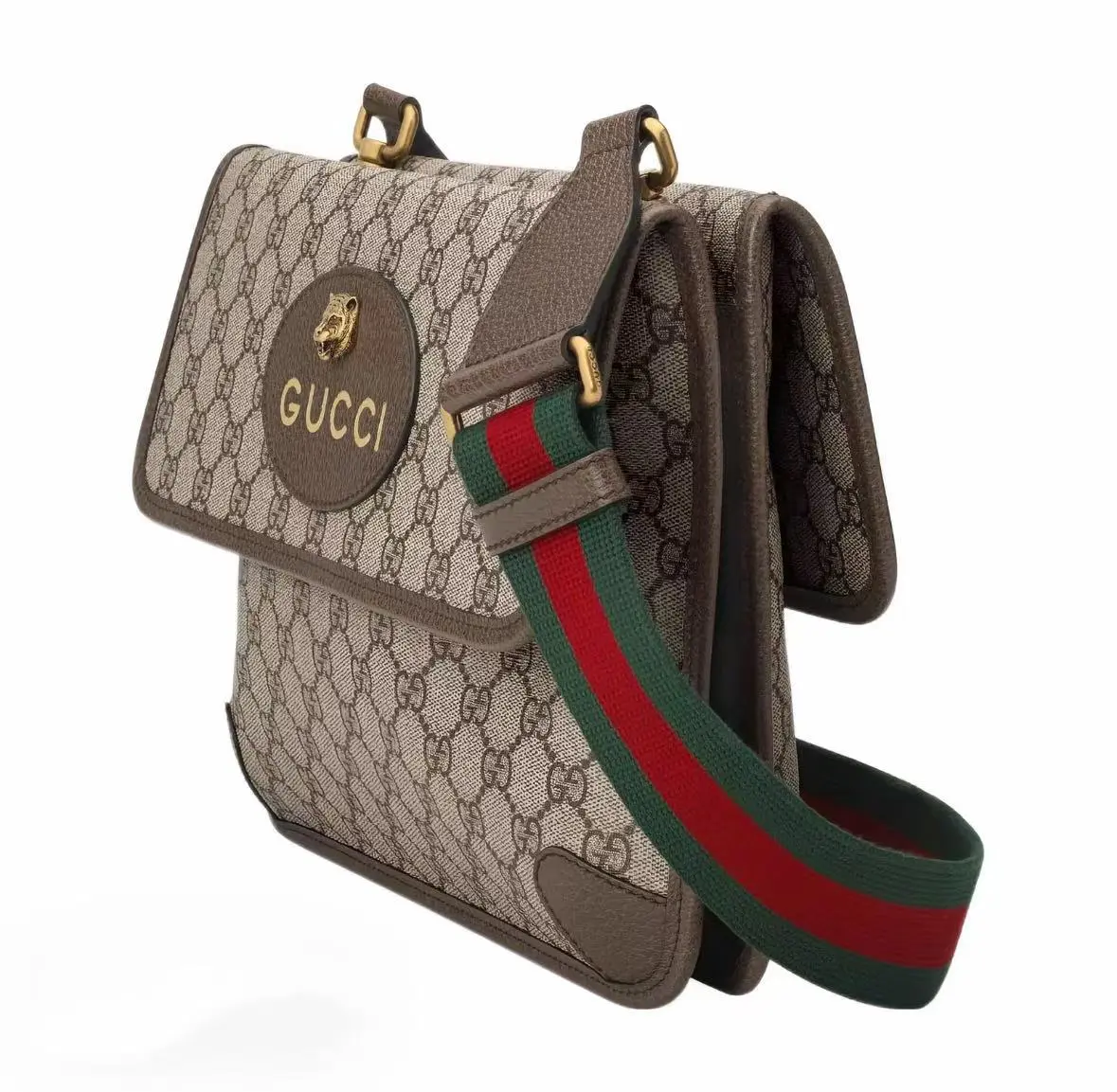 This pre-owned Gucci Neo Vintage crossbody bag is crafted from iconic GG Supreme canvas with brown leather trim, featuring the signature tiger head detail and vintage-inspired Gucci logo. The classic beige and brown colorway paired with the green and red web strap gives it a timeless and recognizable look. Designed for both style and functionality, it offers enough space for daily essentials while remaining lightweight and easy to carry. A highly sought-after piece that combines vintage charm with modern versatility.