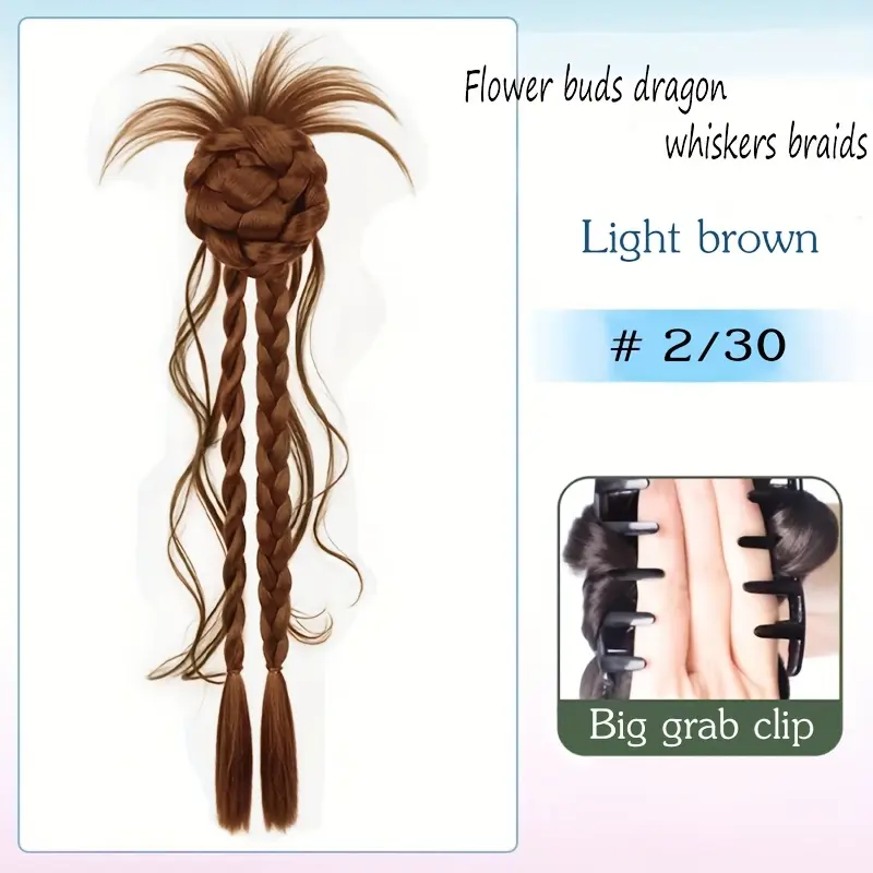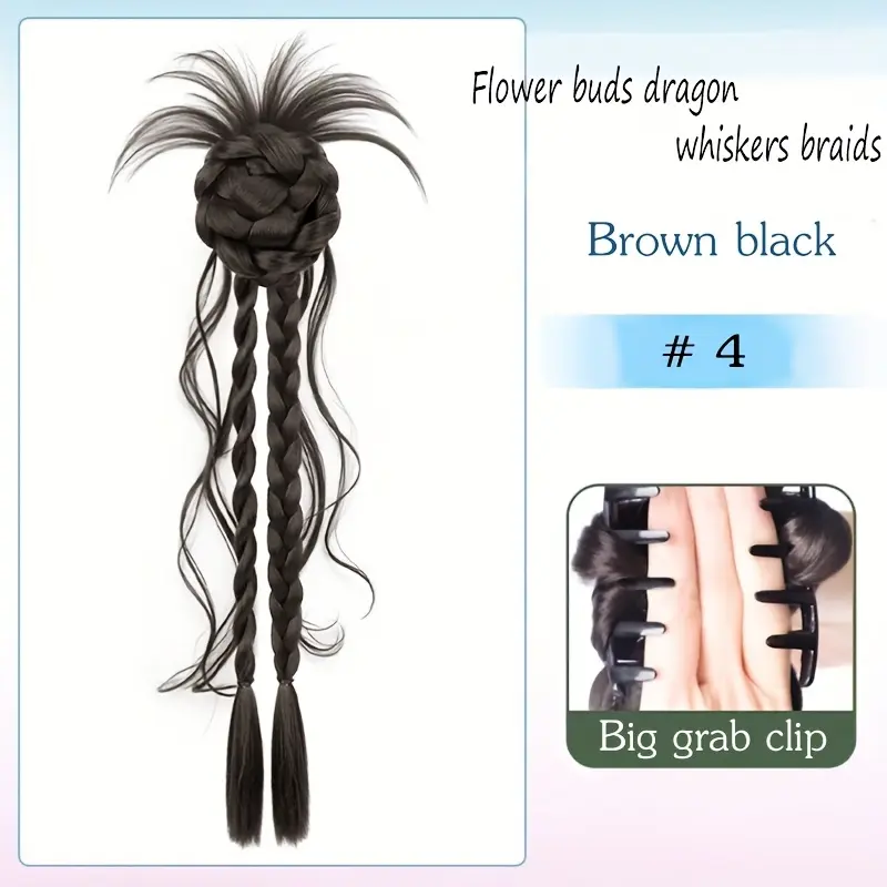 Synthetic claw clip, featuring a 20-inch long twisted braid with a flower bud design