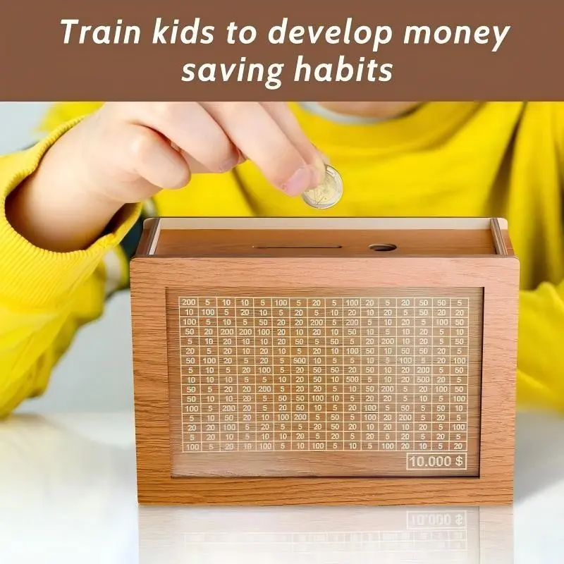 1000/10000 Dollars Savings Challenge Box, Cash Vault Wooden Savings Box for Kids & Adults, Savings Challenge Box Money Saving Box for Cash Coin, Birthday Piggy Bank Gifts Decor Decorative piggy bank Ornaments Decoration