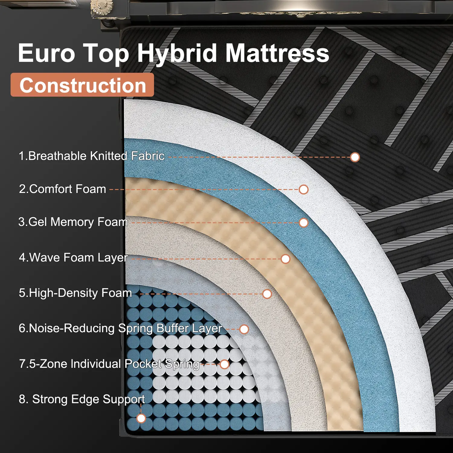 STAY COOL ALL NIGHT LONG - Duchess hybrid mattress covers are made of high-end knit fabric with a comfortable and breathable surface. Cooling Gel-Infused Memory Foam enhances airflow, helps dissipate body heat and stabilizes your sleep temperature, offering a cool sleep experience.