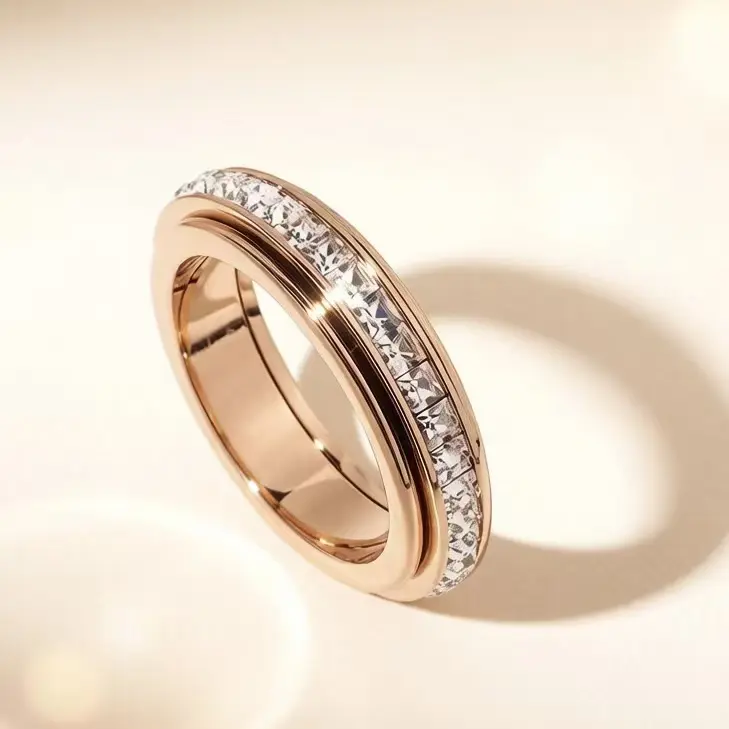 The star cluster ring can rotate. It features a luxurious and dazzling sparkle with a cool and minimalist style. The full diamond finger ring pair does not fade. It is a new 2026 model.