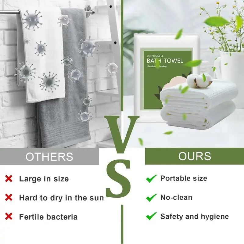 About this item 【Ultra-Soft & Skin-friendly】Disposable bath towel made of 100% plant fiber, feel super soft and comfortable. Our disposable towel is environmentally friendly, biodegradable, does not contain fluorescent agents, safe and hygienic, and can be used with confidence