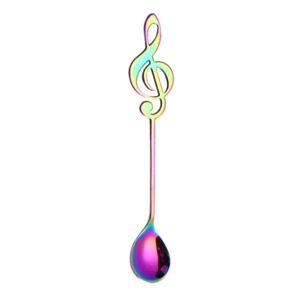 ♫ Comes in choice of Silver or Iridescent Rainbow.♫ Treble Clef measures 2 1/2" long and 1" Wide.♫ Spoon measures 6 1/4" long.