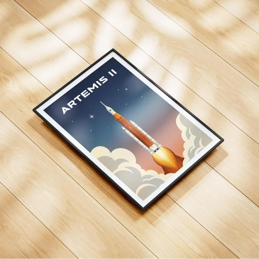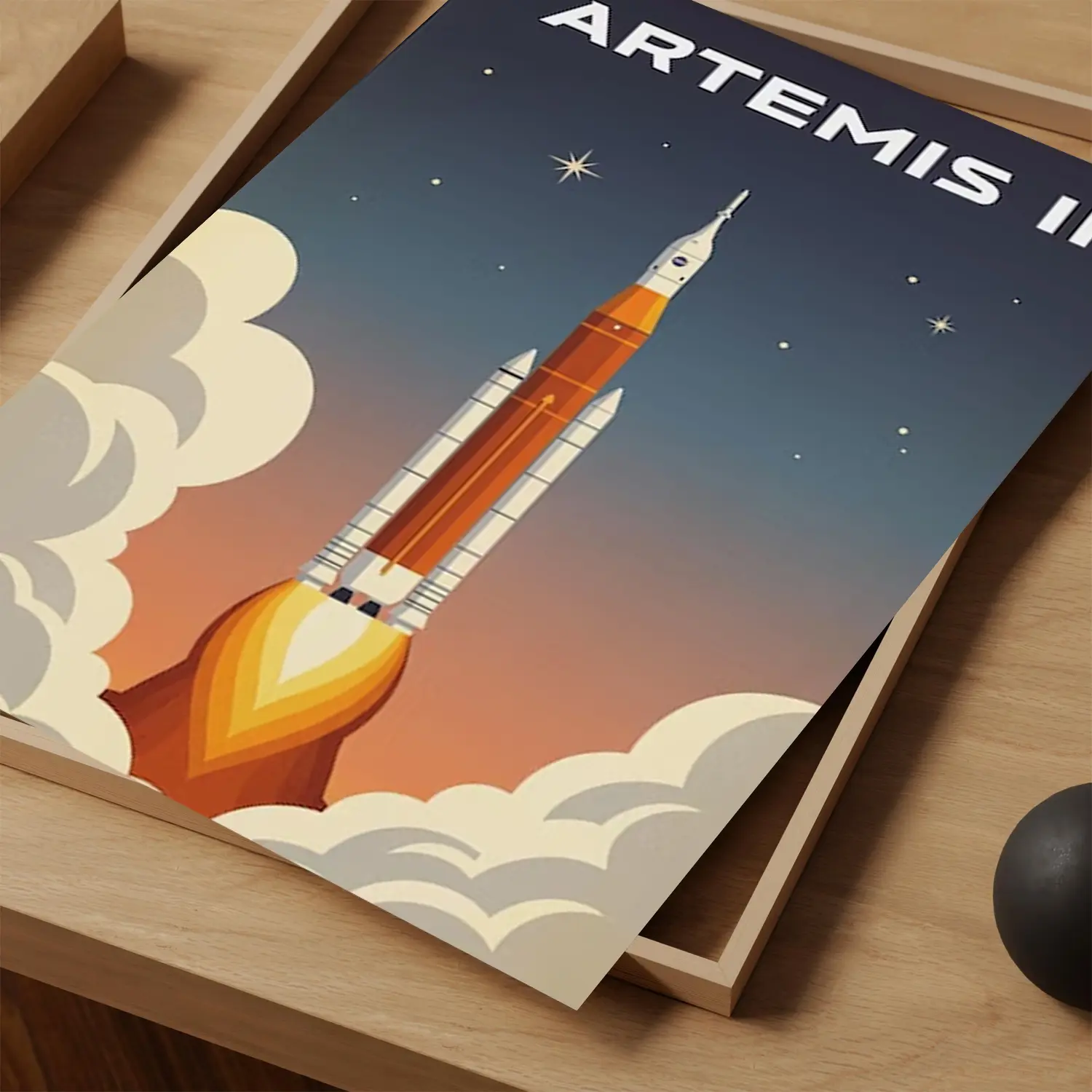 Artemis II Vintage Illustration Poster No Frame, Retro Space Travel Wall Art, Rocket Illustration Decor, Space Fan Gift, Vintage Astronomy Art Print